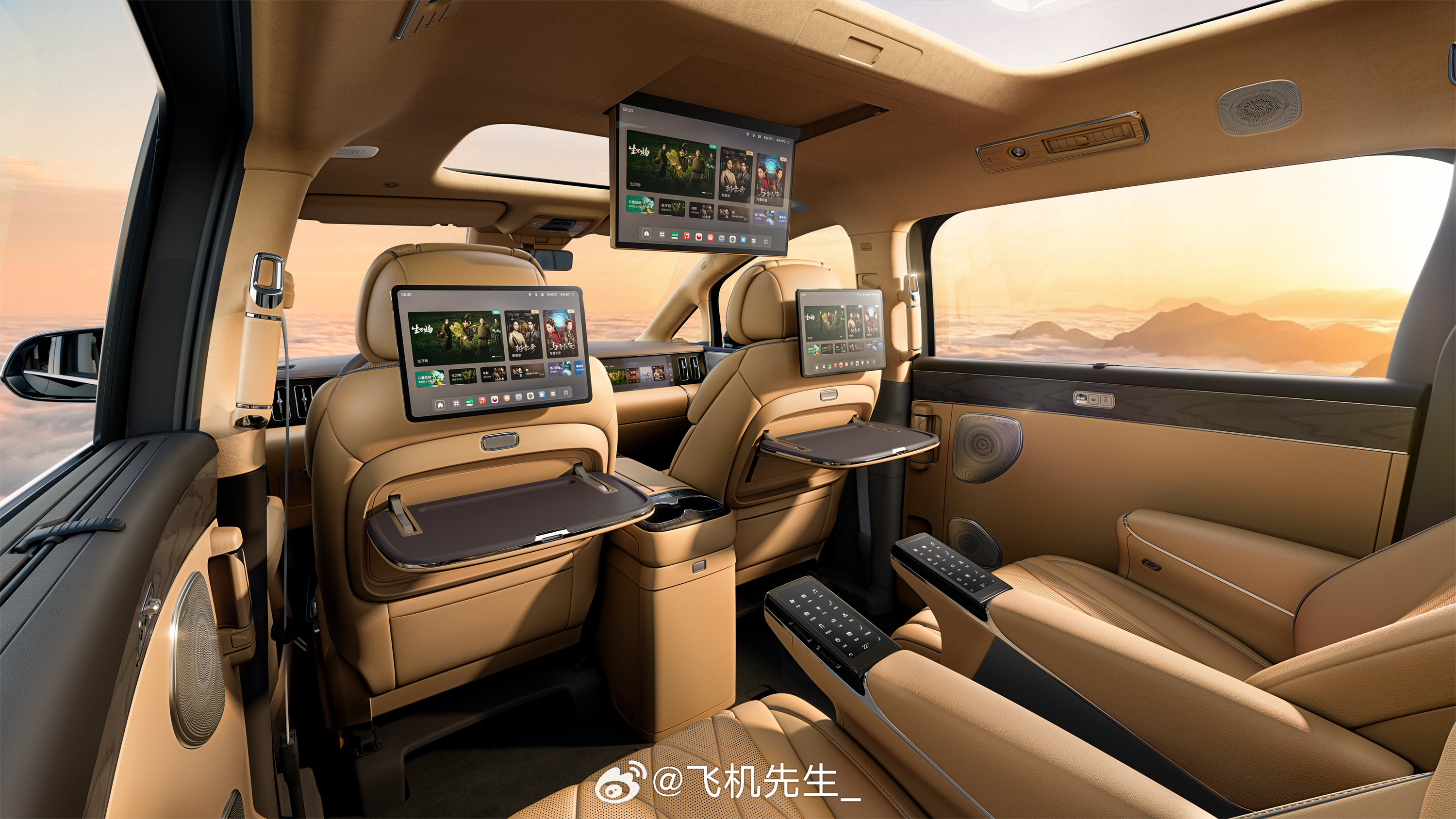 在吸顶屏和后排座椅屏中间取舍的时候,这次新款腾势D9直接给满
