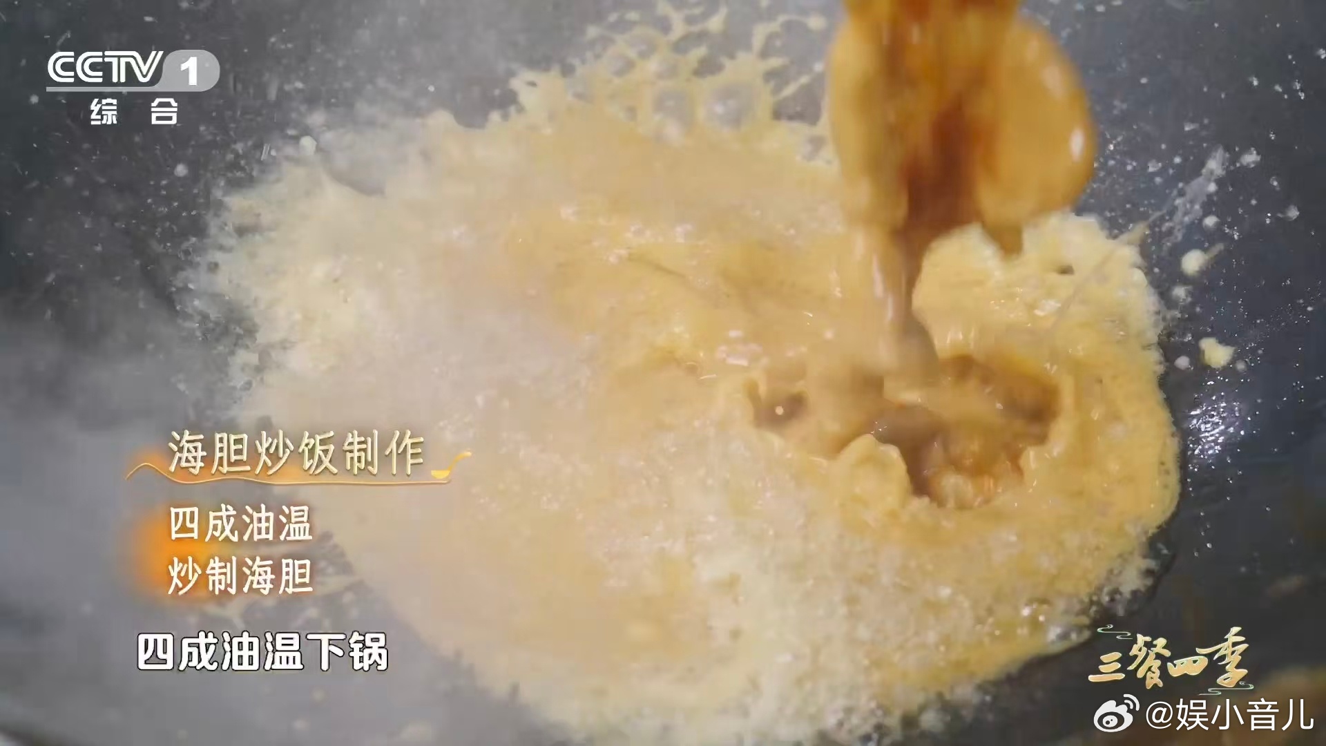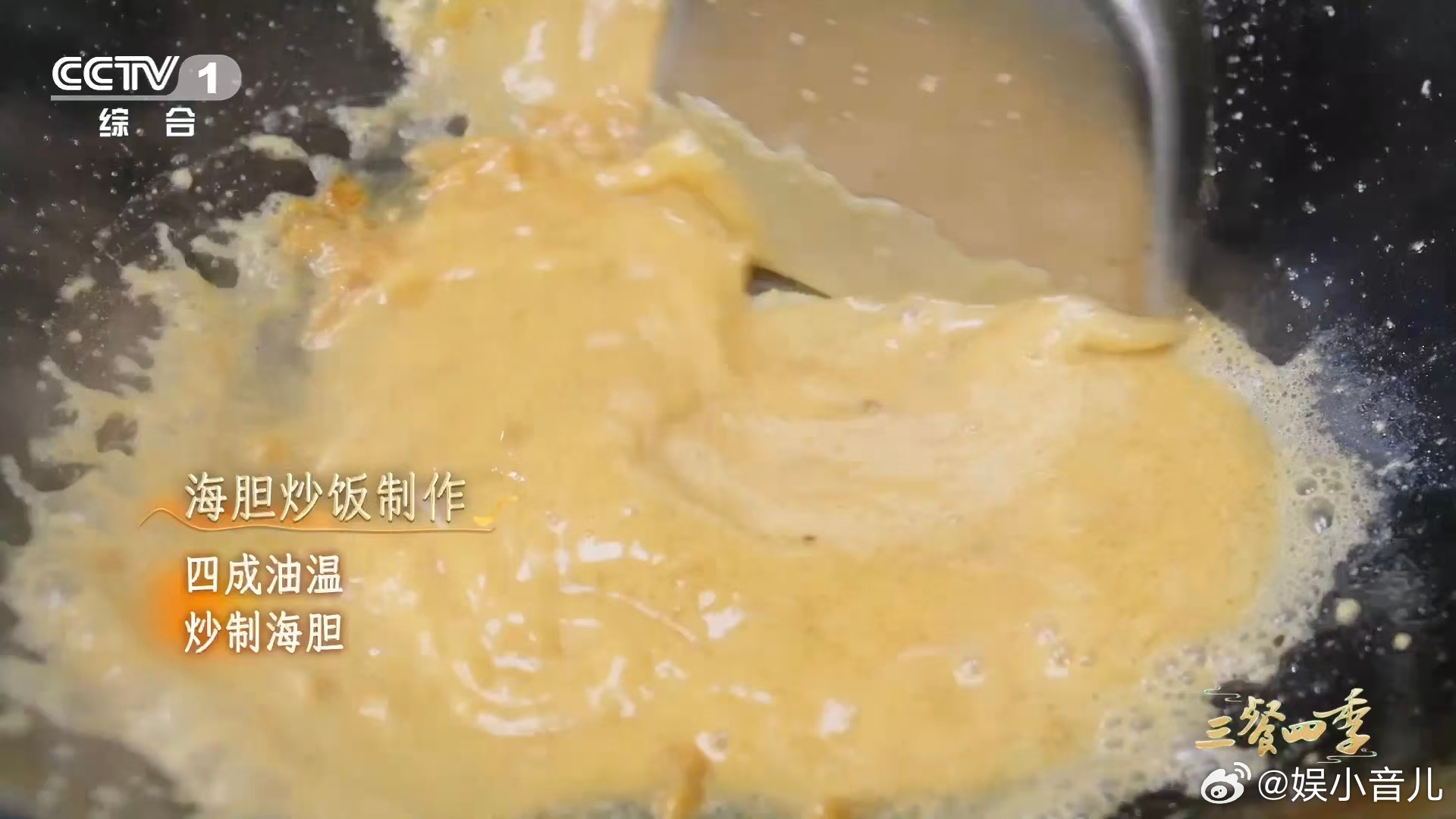干饭人的梦中情饭来了 海胆慢炒过后味道太正了👍,加了老菜脯和豆角,和米饭拌一起,口感层次超丰富谁能拒绝一碗金灿灿的海胆炒饭