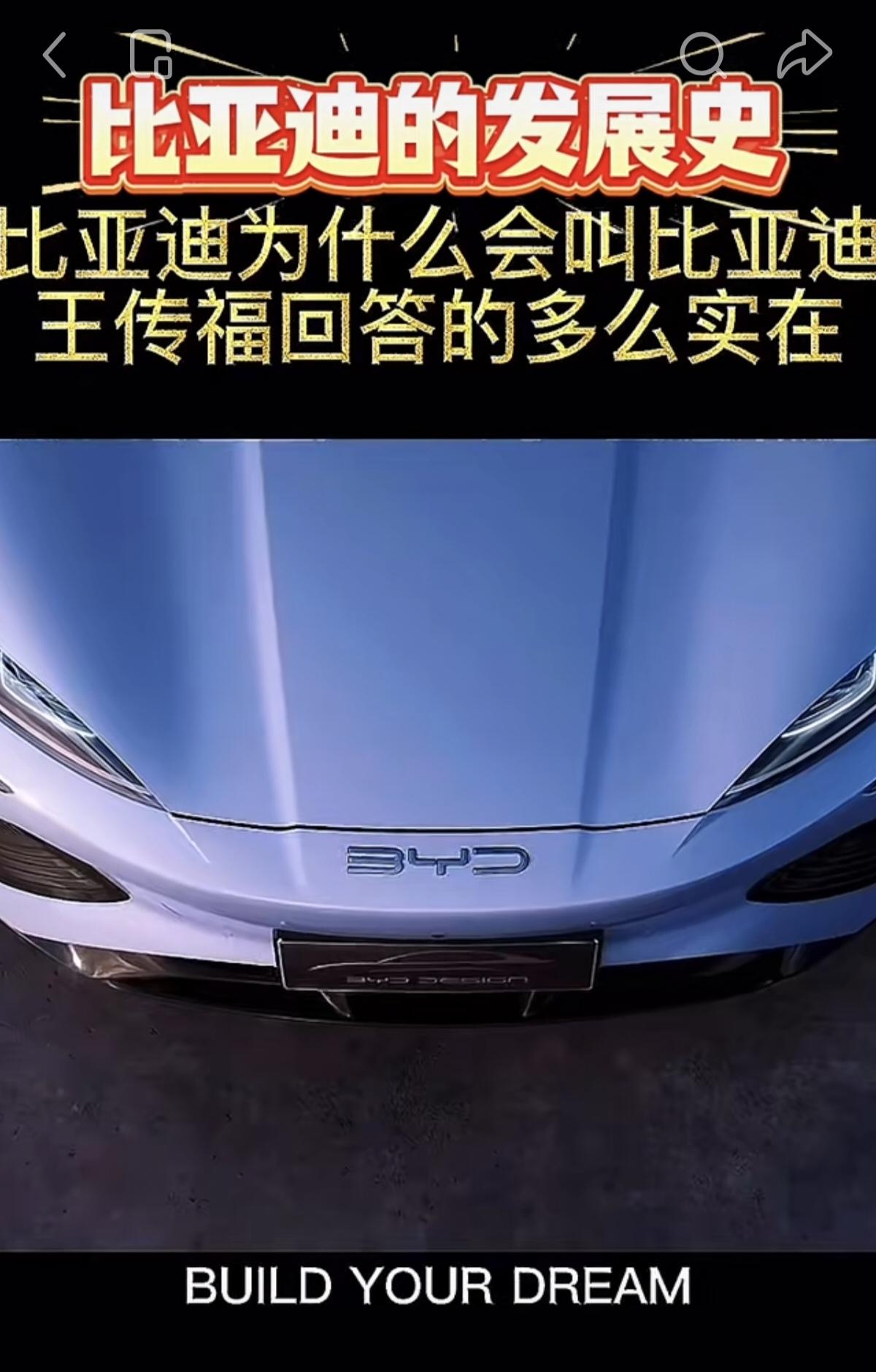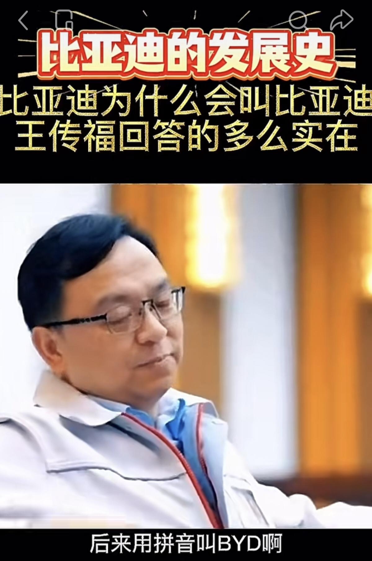王传福被问到:比亚迪为什么会叫比亚迪。王传福听后精神都来了,回答的多么实在! 2021年3月《腾讯新闻·酌见》中,俞敏洪问王传福为何取名“比亚迪”,王传福回答:“深圳企业多,两字名难注册,起五个都重名,只能取三字。比亚迪比较怪,更容易通过。当时创业艰难,能不能活下去都不知道,先注册下来再说。后来企业做大,才把BYD包装成‘Build Your Dream(成就梦想)’”。 王传福靠技术+性价比+全产业链打响比亚迪,1995年从电池起步,靠低成本自研打入摩托罗拉、诺基亚供应链。2003年跨界造车,2005年F3以高性价比爆红,年销破30万。2008年推出全球首款量产插混F3DM。后续靠刀片电池、DM-i混动、e平台等核心技术,覆盖家用到高端(仰望),2023年销量超300万辆,2024年和2025年连续超过400万辆的销量。电车销量远超丰田和特斯拉,登顶全球新能源车企,从电池厂成长为万亿级科技制造巨头。 BYD的名字好听吗?大家觉得?