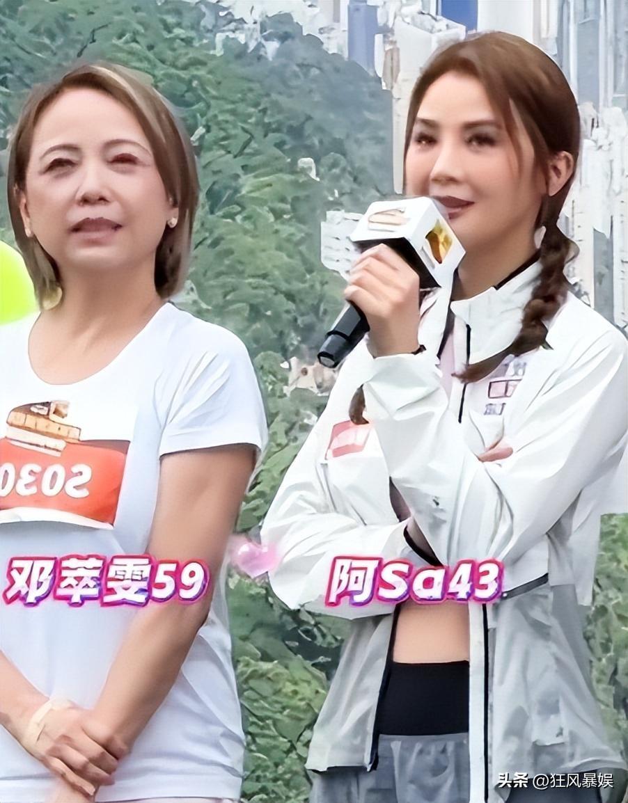 阿Sa,被群嘲! 近日,多位明星现身香港,参加马拉松开跑,造型简直是一言难尽,尤其是阿Sa,被群嘲了,这是咋回事? 当天,阿Sa身着白色运动防晒衣,搭配着紫色运动背心及超短裤,脚蹬专业运动鞋,还梳着减龄麻花辫。但遗憾的是,她的脸略些馒化,眼袋和黑眼圈也很明显。 不少网友表示: 脸像馒头! 不过,她全程保持微笑,积极配合拍照互动,不得不说,职业素养还是有的。