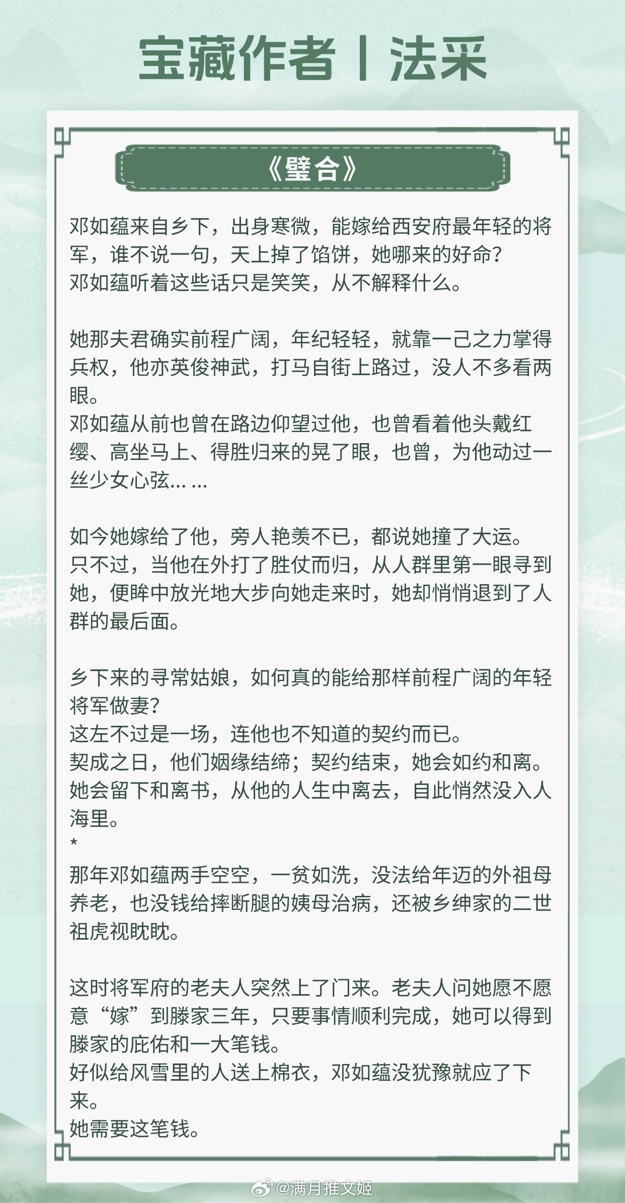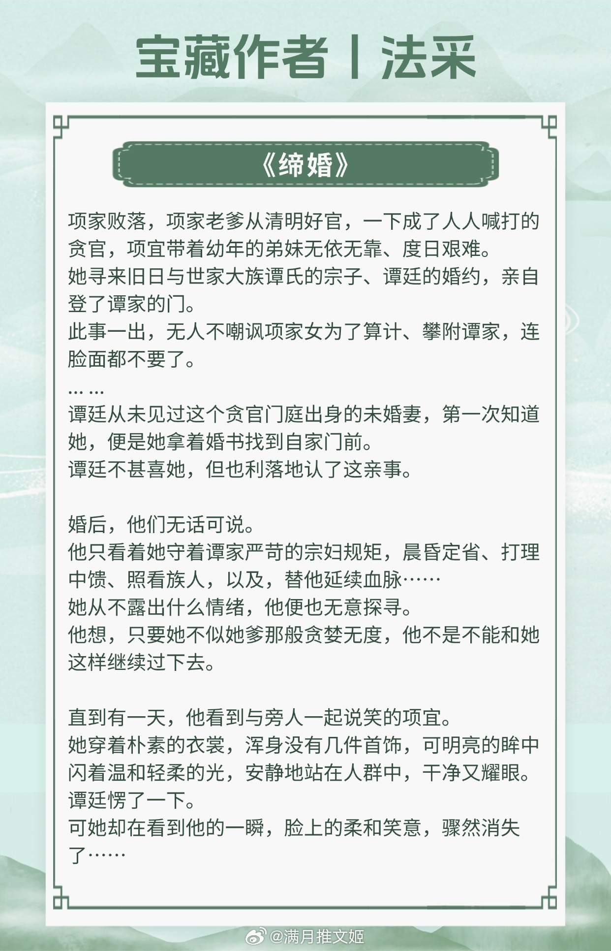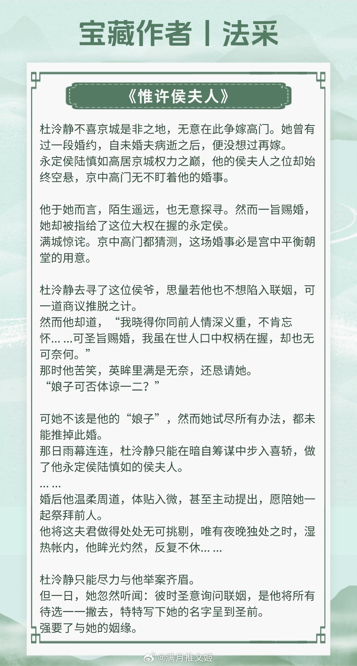 【宝藏作者:法采】为了她金戈铁马、破釜沉舟,未曾再回头。擅长写先婚后爱古言,酸甜拉扯看得人抓心挠肝!