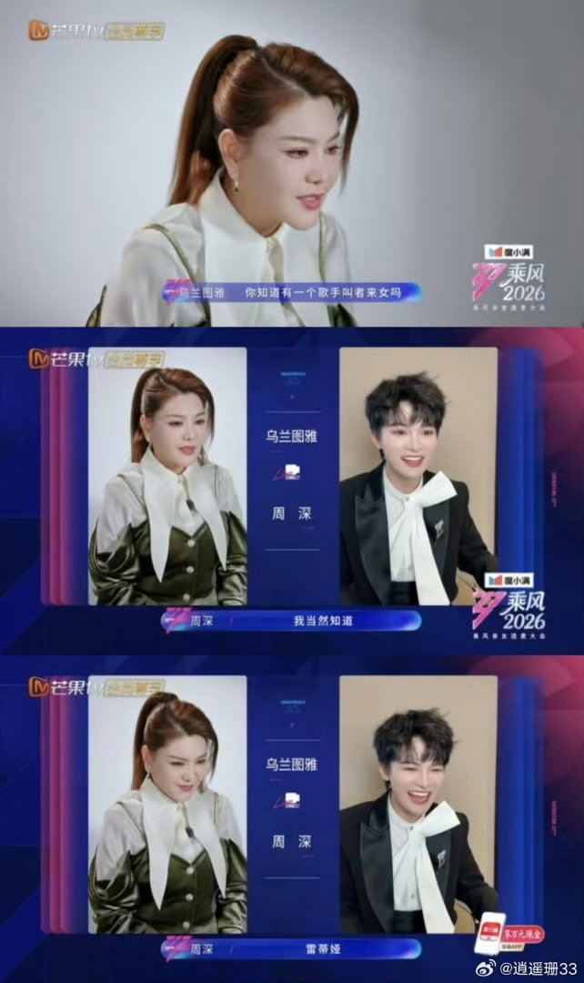 周深你好响周深贴脸乌兰图雅 周深跟乌兰图雅连麦这段,确实太有梗了。冲着人家唱“蒙