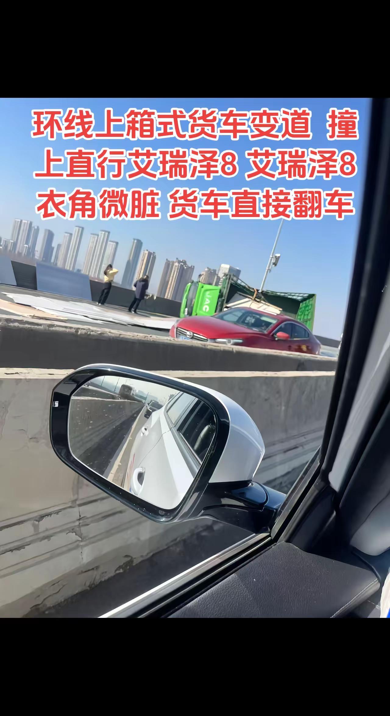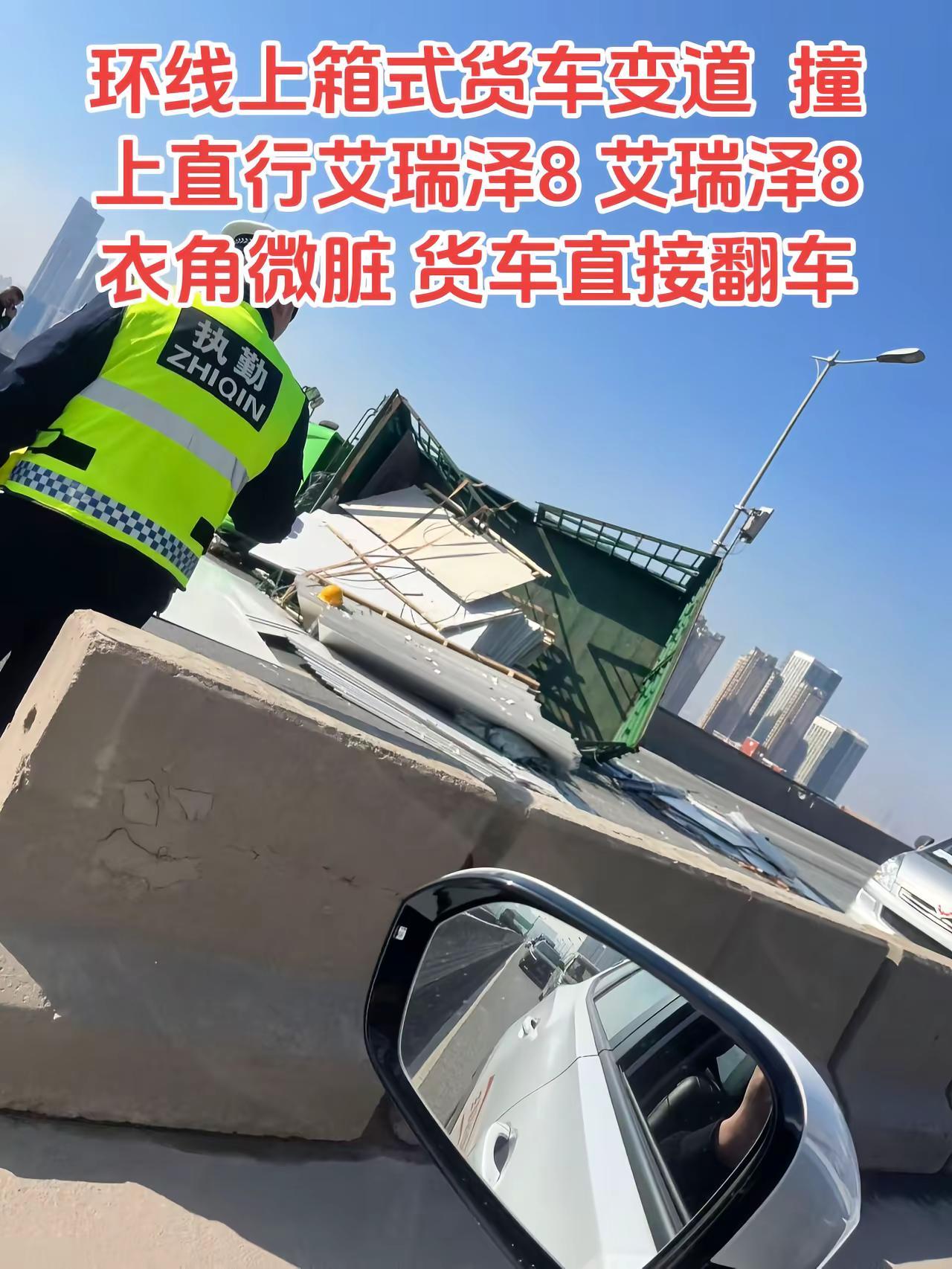 真正拥有过奇瑞的说实话下一辆还会选择奇瑞。环线上箱式货车变道撞上直行艾瑞泽8 艾瑞泽8衣角微脏 货车直接翻车艾瑞泽8 小鱼跳跳 奇瑞汽车 艾瑞泽8每一面皆赢面