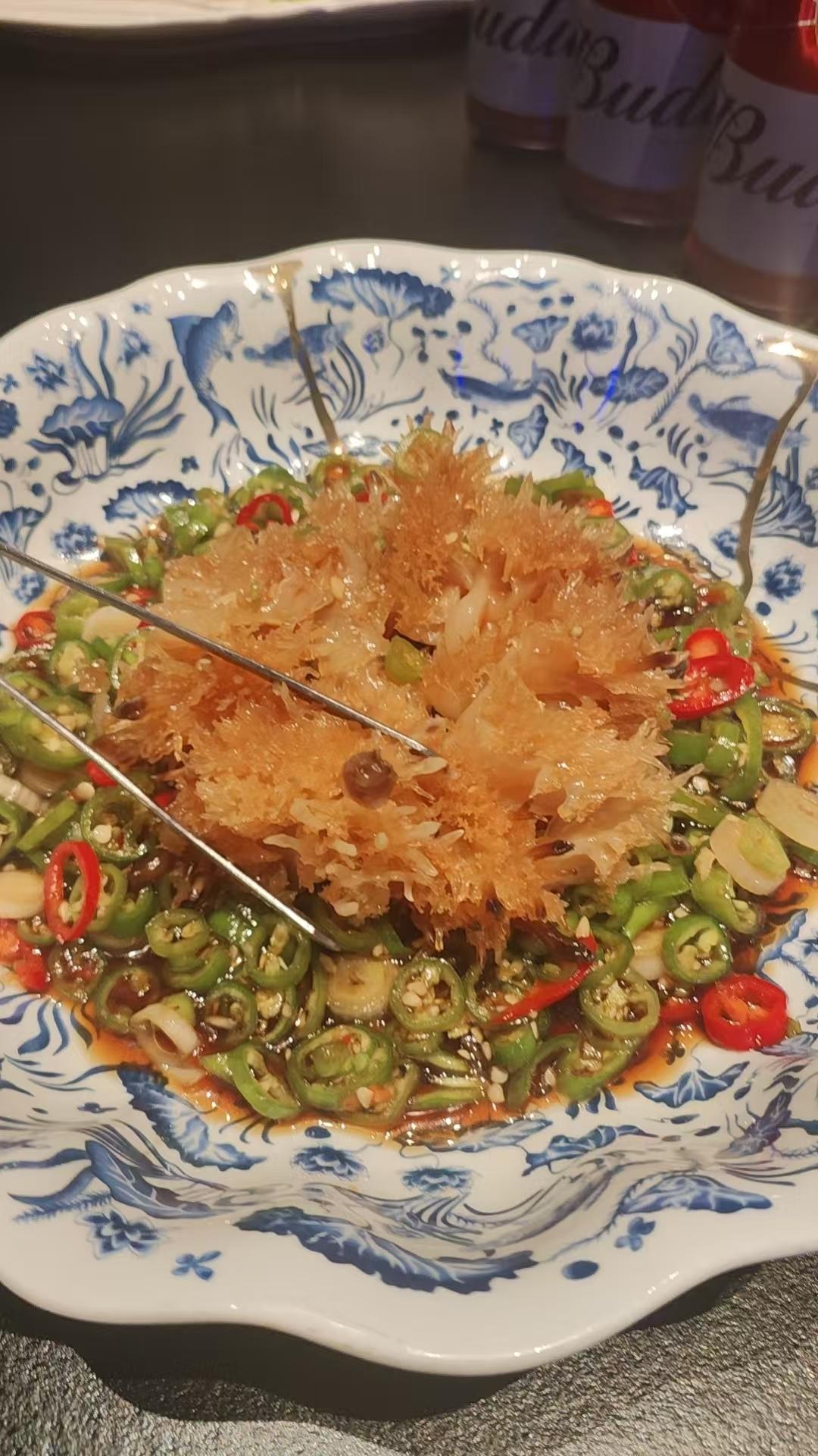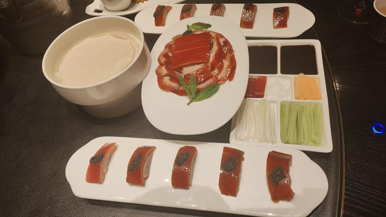 在和平区发现一家宴请聚餐超有面的神仙餐厅——双宴,吃完直接锁死在我的私藏清单! 一进门就被它精致的轻奢感戳中,黑金大理石走廊高级感十足,透过全景落地窗俯瞰滨江道繁华街景,心情豁然开朗简直无敌好!餐厅绿植环绕宛如天然氧吧,环境超有格调。无论是商务宴请还是家庭聚会都倍儿体面,随手一拍发圈直接封神。 菜品更是闭眼点不踩雷! ⭐ 风生水起捞三文鱼:堪称宴席上的点睛之笔。造型舒展大气,一上桌便自带气场,是宴请宾客时撑得起场面的绝佳选择。更妙的是那份专属的仪式感~“捞起捞起,风生水起”,将美好期许融入这一筷子的起落之间,氛围感瞬间拉满。鱼肉色泽鲜亮、入口鲜甜,带着恰到好处的弹性,每一丝纹理都浸满了风味,清爽不腻,余味悠长。 ⭐ 卡璐伽鱼籽酱烤鸭:堪称中式烤鸭与西式珍馐的精妙邂逅,淡淡的木质熏香,色泽红润如琥珀,入口是外焦里嫩的鸭肉肌理,裹挟着鱼籽酱的咸鲜回甘,余味里还留着果木的悠长香气,一口便知是匠人与食材的用心对话,堪称烤鸭界的点睛之笔,这口感谁吃谁不迷糊! ⭐ 白切清远鸡:粤菜师傅功力的最好证明,鸡皮金黄脆亮,轻咬便有“咔嚓”的脆感,皮脆、肉嫩、骨香,肌理间锁满了鲜汁,没有过多调味,却将食材的本味提炼得淋漓尽致,看似简单的白切鸡,却藏着粤菜“食不厌精,脍不厌细”的灵魂,是真正懂吃的人才能品出的好味道。 ⭐ 法国松露烧海参和葱烧辽参,都是实打实的硬菜,海参软糯入味,松露香气浓郁,好吃到舔盘。 服务更是加分项,从进门到用餐全程贴心周到,服务员专业又有分寸,添茶换碟超及时,还会细心介绍菜品、把控上菜节奏,完全不会过度打扰。 酒足饭饱后还有更大的惊喜!只加200元就能在原包房里嗨唱一下午,级音效超专业,不用转场就能从美食局无缝切换到K歌局,快乐翻倍! 无论是浪漫约会、好友小聚还是体面的商务宴请,双宴都能稳稳拿捏,它已经牢牢焊死在我的无限回购清单里! 所有爱美食、爱热闹的朋友,不要错过哦否则真的会后悔! 天津美食