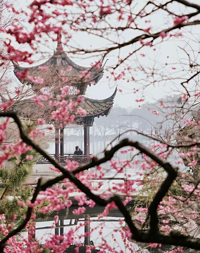 在西湖湛碧楼,我等到雾起梅开。原来真正的江南,不是风景,是一瞬让人安静下来的心。