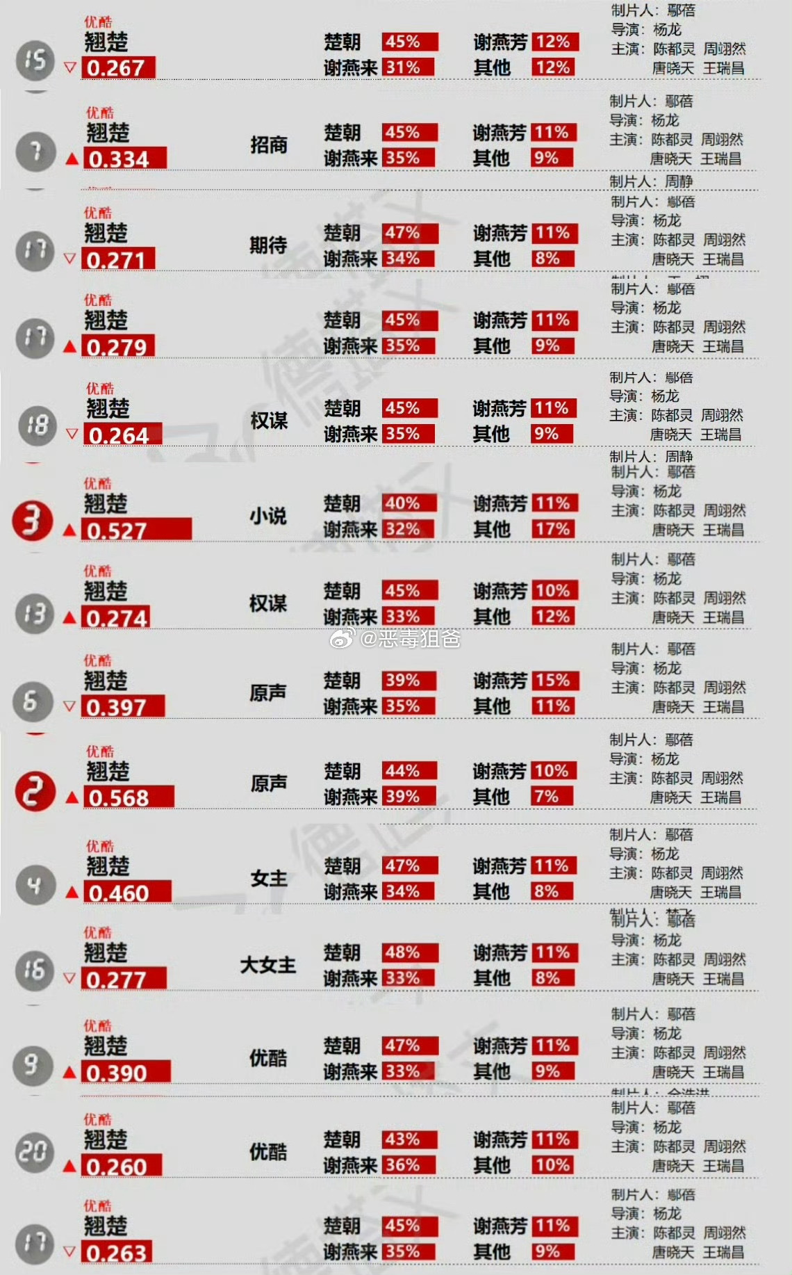 陈都灵《翘楚》又单人拖航母了《翘楚》热度最高的永远是陈都灵楚朝期待一番大女主楚朝了
