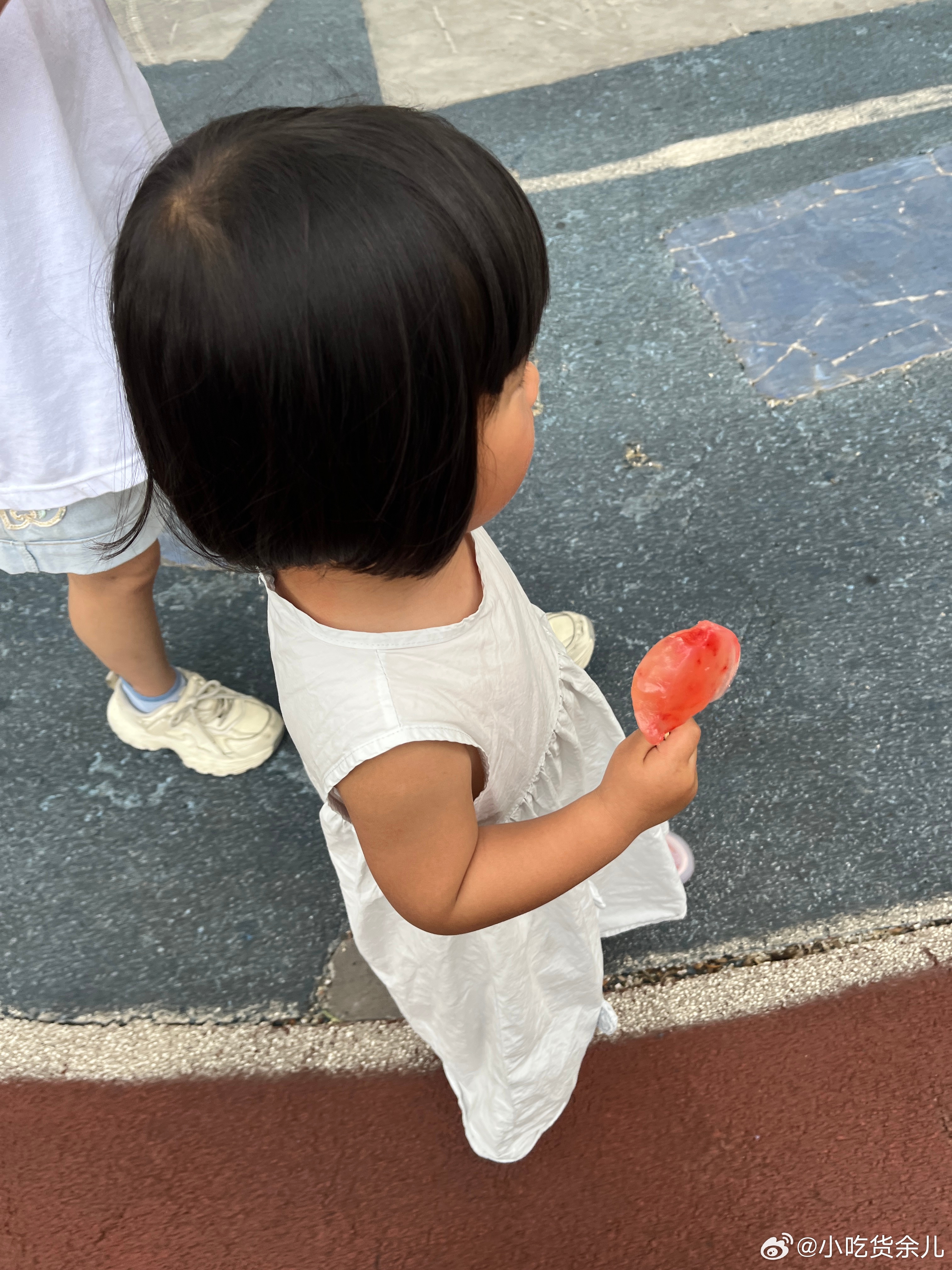 睡醒了,来公园玩,她姐姐吃雪糕,我不让她吃,她吃过一个了。