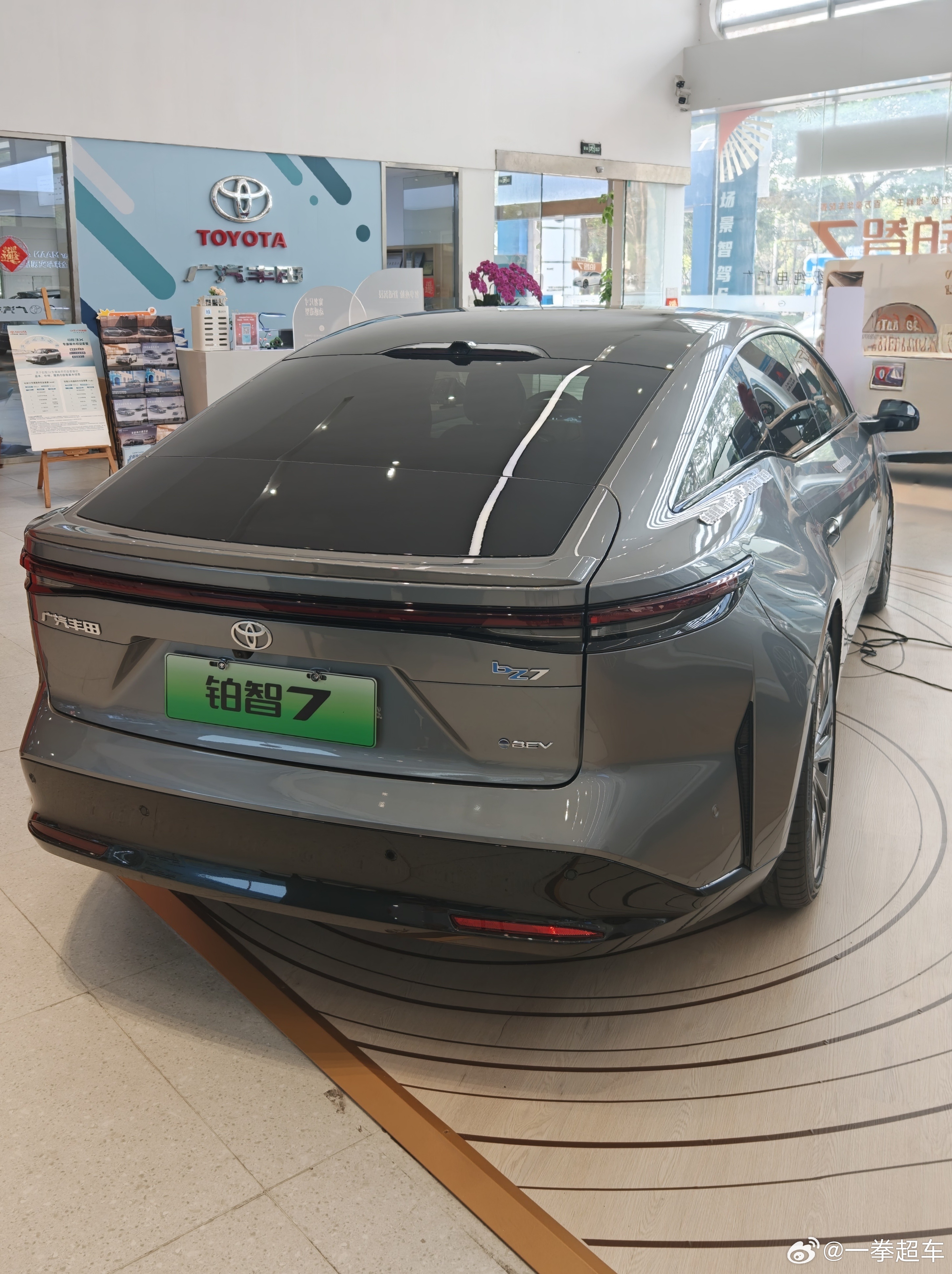 钱花在刀刃上——丰田铂智7试驾体验去年车展就见过丰田bZ7实车了,当时我觉得这车的外形很好看,静态表现也很不错。之前预售价15.68万起步挺良心的,不过这个价是扣完所有补贴后的价格。今年广汽丰田也正式发布了它的价格,区间是16.98万—22.98万。刚好我今天体验的车型是指导价22.98万的顶配,最近对这车感兴趣的可以了解下。静态上,我觉得这车真的很不错。 外形好看,内饰设计也不错。虽然用料做工并没有太越级的高级感,但也对得起这个价。方向盘可以调得比较长,能轻松调到合理坐姿。前排座椅坐垫和靠背都表现很好,属于一上车就觉得舒适的车。后排腿部空间大,脚还能塞到前排座椅下,坐垫也挺长的,对大腿的支撑相对挺好。靠背在没调的情况下还是比较陡,同时头部空间也不大,这个座椅就不太舒服;往后调了之后就非常好了,靠背舒适、头部空间也足够,是这个级别比较好的座椅。动态上,试驾过挺多款丰田魔改的电车,我觉得开着都挺棒的。 毕竟平台一样,能调校出几种不同的性格也很正常。不过试过这辆bZ7,我显然是有点失望的,它的表现肯定不差,只不过我对它期望有点太高了。转向属于特别没有性格的表现:低速很轻,高速也不重。虽然高速稳定感也不差,但配合比较佛系的车身跟随性,开着它会让你没有一丝丝想开车的欲望。操控感受和转向表现差不多。过弯的支撑其实还可以,侧倾控制能接受,但过弯的表现特别随和,开着它过弯是一个非常无聊的过程。滤震给中评。在比较好的路上还是比较高级的,有种悬浮感,感觉这是一辆特别高级的车;路稍微差一点就露馅了。颠簸稍微大一点,就会觉得底盘有点散,对颠簸的过滤也不是很整,前后桥的表现也特别挣扎。和朋友一起去试驾的,他坐在后排表示特别晕车。动力总成挑不出什么毛病,平顺性、响应速度都挺好,体感7秒多破百的水平也足够用。刹车脚感挺正常,正常刹挺线性,重刹也有信心。隔音表现中评,胎噪、风噪控制符合这个价应该有的水平,底盘噪音在烂路下的感觉差一点。相信大家看到这,能感觉到丰田BZ7这辆车是什么性格。它突然真的很像20年前的一些丰田:亮点全在容易感受得到的静态上,座椅舒适性确实比较好。开起来也不差,开上它你会觉得驾驶是特别没劲的事。它在我开过的丰田电车里最无聊的,bZ3、4、5比它有意思多了。当然,你要是就想买一个坐着舒适、开着不差的丰田纯电轿车,也可以考虑。不过因为我和朋友试驾的时候晕车感太明显了,建议真想买务必带家人体验一下是否晕车。
