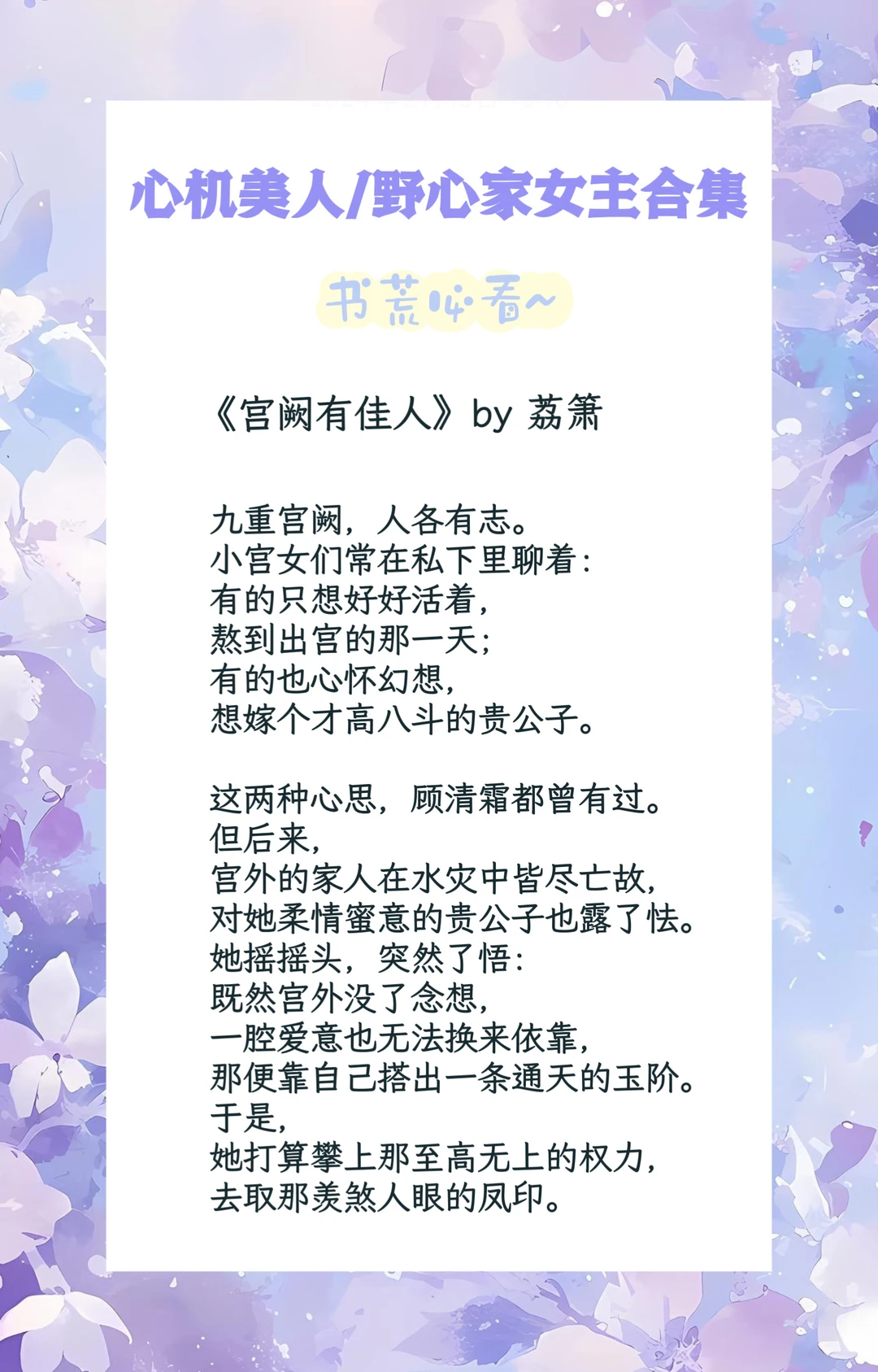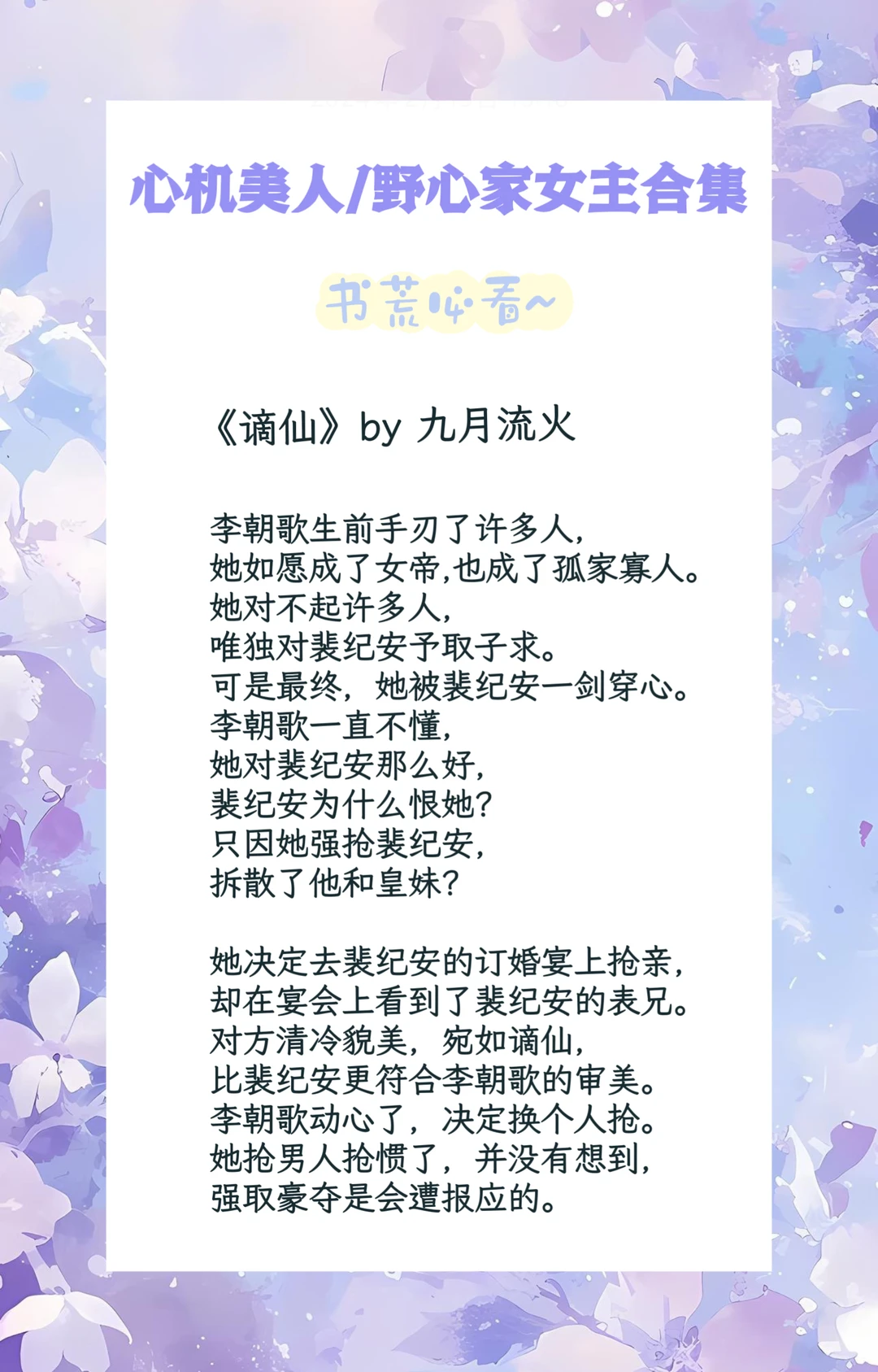 1️⃣《攀高枝》by白鹭成双 古言甜文|双向救赎 2️⃣《谪仙》by九月流火 双强 |古风悬疑 3️⃣《揽芳华》by乔家小桥 先婚后爱|欢喜冤家 4️⃣《不醒》by一度君华 仙侠文|破镜重圆 5️⃣《宫阙有佳人》by荔箫 宫斗|升级流 -