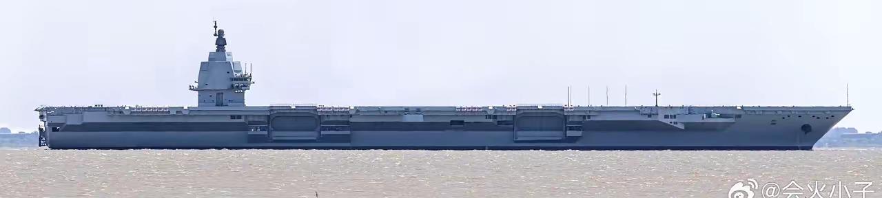 004核动力航母,后置的小而精的舰岛,一体化的桅杆,四条电磁弹射装置,三部升降机