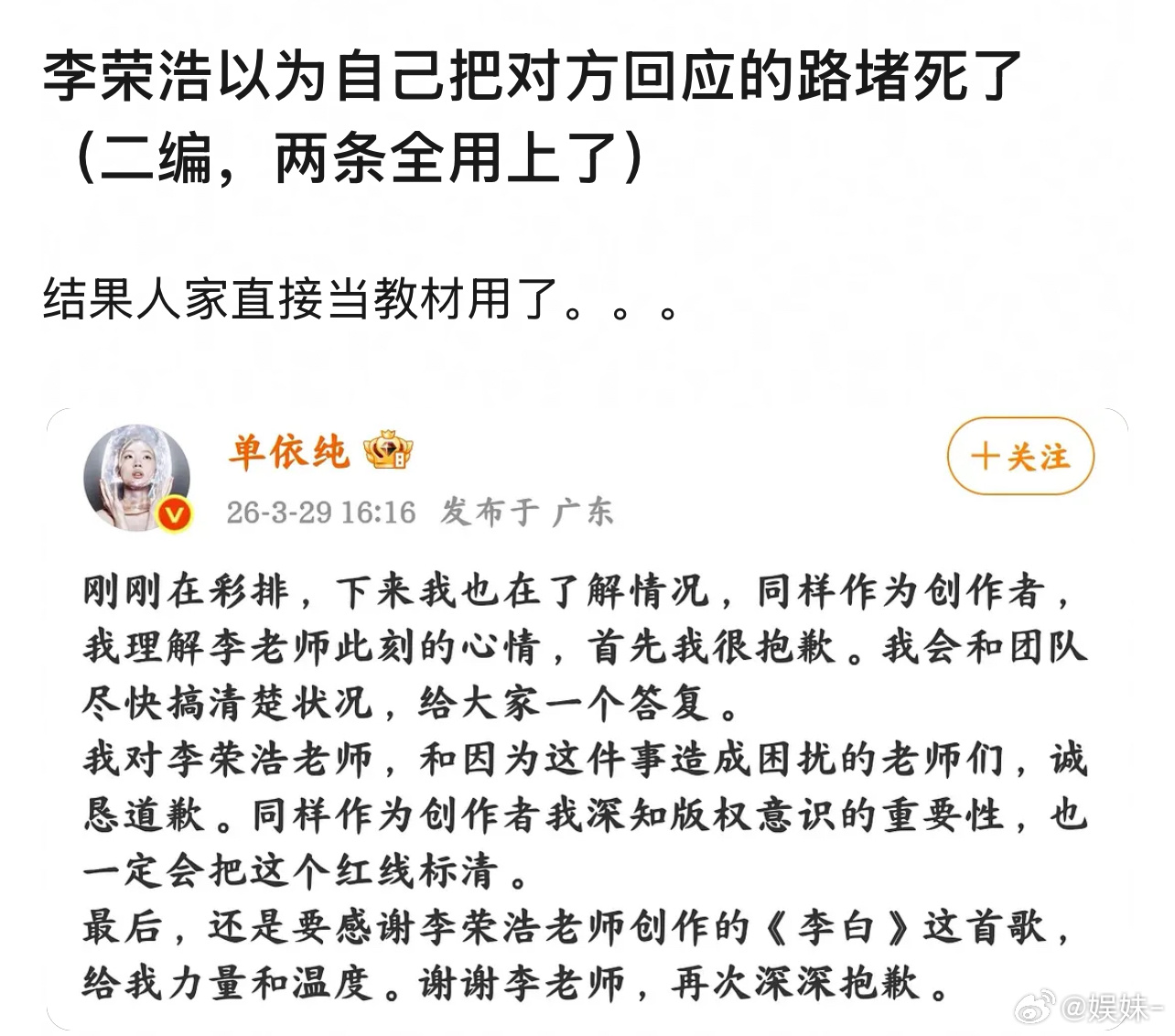 感觉是扇了对面一巴掌,结果被对面舔了一口,支持老李头继续爆料