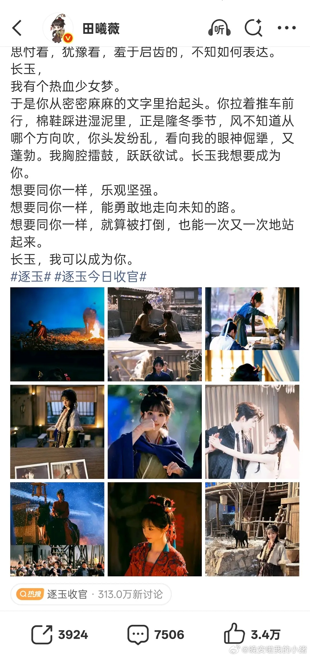 田曦薇收官博还特意发了和张凌赫的结婚照