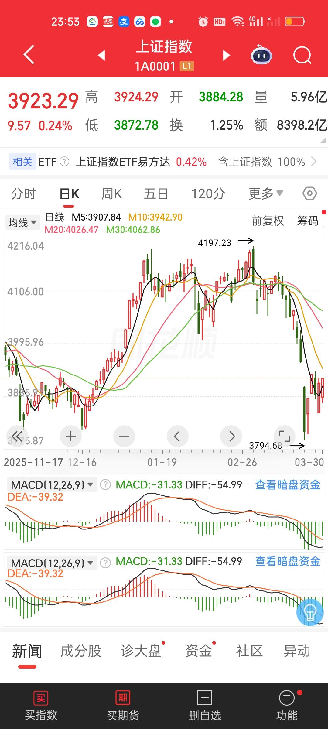 关于大盘我还是简单说下我的意见,很明显连续两个交易日的走势都像是有人在人为控盘,所以从这个角度讲,无形中的大手反而可以保大盘无忧。明天大概率会接着反弹。 其次今天早盘冲高后的下杀是带量的,也就是一口气杀到3872点这波,这个时候已经放量1800亿。而收盘只放量638亿,也就是说全天的量都是在这个时间放出来的,这个位置很显然不是机构在抛。至于是谁在抛,大家自己猜猜看。 第三,我依旧坚定认为二次探底一定会来,但不是现在。因为目前券商,保险以及许多科技的大票跌幅都已经很深了,并且这次反弹它们并没有参与。只有银行稍稍上涨了一些,所以很难和其它板块形成二次探底的合力。所以要等它们反弹以后才会开始二次探底。这个时候合力越大,下杀的幅度就会有越深。 关于二次探底的深度,我认为肯定会破前低3794点,这是最保守最温柔的下杀幅度。我是看到3744点的。极限看前高下来500点,也就是4197-500=3697点。 至于会不会到达这个极限位置,要看摇车的效果,温柔摇车能达到效果自然最好,如果温柔摇车没有效果,那只能疯狂摇了,当下跌60个点还没有效果,那就直接短时间内来110个点的暴力下杀。看着本金在短时间巨幅减少,那种巨大的心理压力就问你怕不怕?当你刚刚割肉,1分钟后就快速拉起来了。那才是最绝望的!