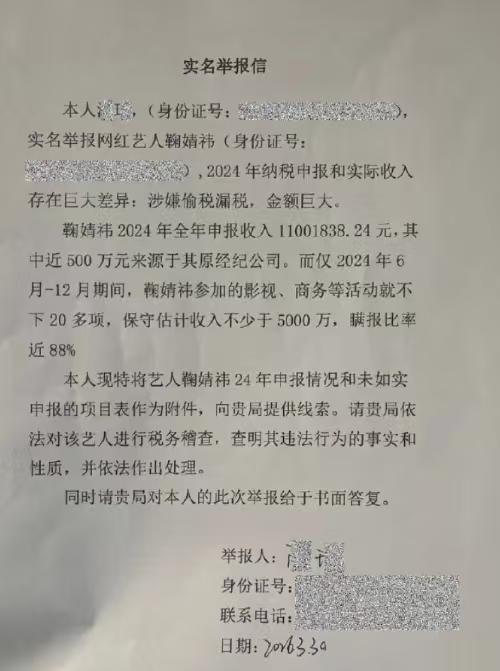 长见识了!看鞠婧祎被举报偷税漏税才知道,原来明星拍杂志还可以销量分成,一本杂志分成超1000万! 3月30日,鞠婧祎前经纪公司丝芭传媒实名举报她涉嫌偷税漏税,详细列举项目,说她2024年申报收入只有1100多万元,实际收入超5000万元,瞒报比例高达88%。 看到细节有点惊讶,拍一部剧如《月鳞绮纪》片酬超千万都觉得正常,但拍杂志居然这么高,拍杂志《精彩OK!》销量分成900万元、拍《Wonderland》销量分成1100万元! 原来,明星拍杂志不止是一次性收广告费,还可以像卖书一样收版税,真是太好赚了。
