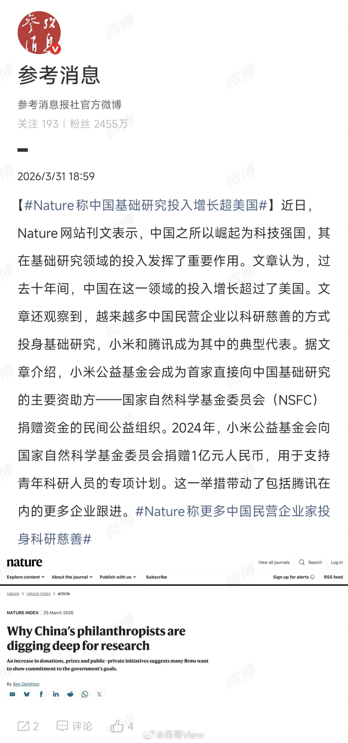 不是自夸,这是国际顶刊盖章认证。小米被Nature当作典型案例,不是因为它卖了多少手机,而是因为它是首家向国家自然科学基金委员会捐款的民间公益组织。