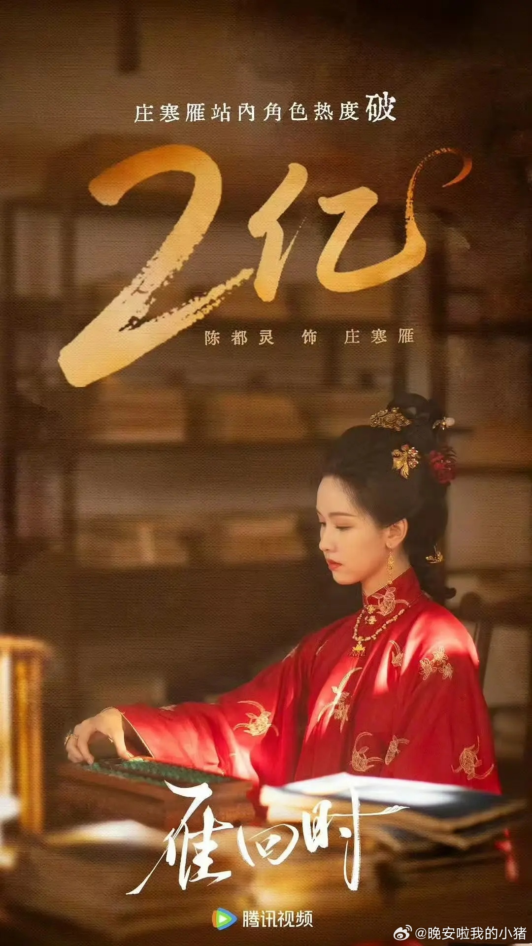 陈都灵雾妄言角色热度破亿,成为首位腾讯优酷双平台一番角色热度破亿的女演员!
