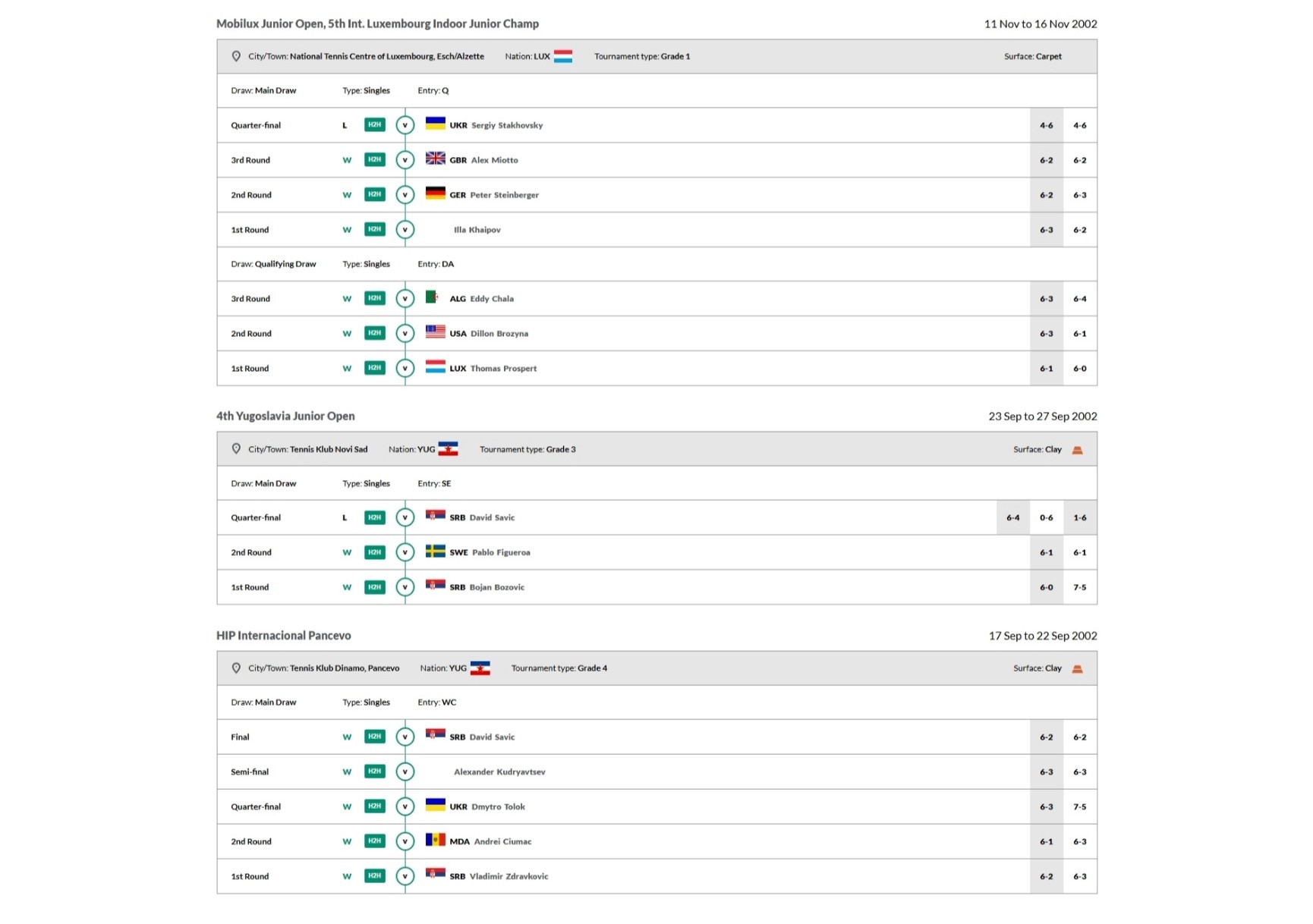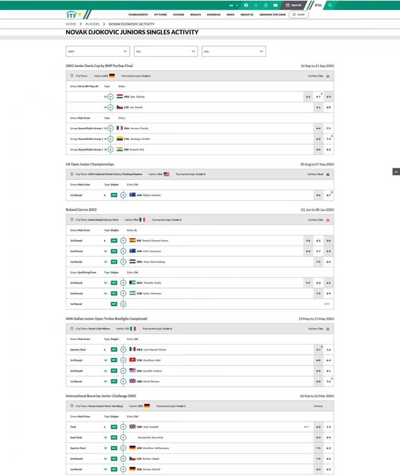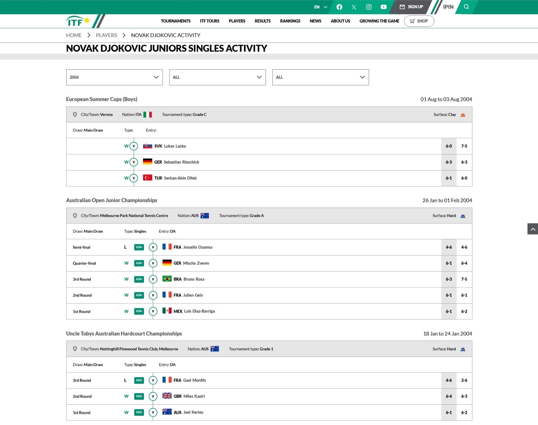 年代久远,暂时找不到你闹小时候打欧洲网协(之前叫ETA,European Tennis Association,现在改名TE,Tennis Europe)比赛的成绩,只有他的ITF Junior战绩网页链接