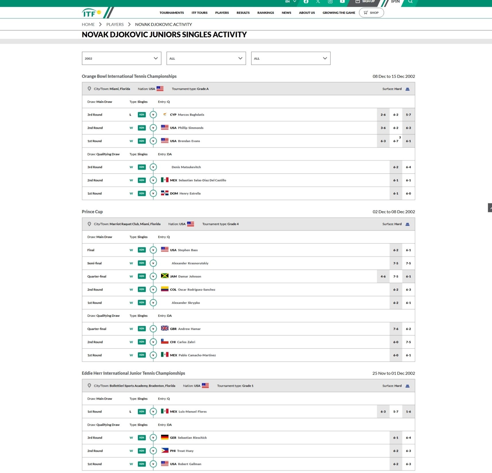 图5-6 2002年,15岁重返ITF,29胜4负,胜率88%。全年参赛6站,赢下两站四级赛冠军(J60),一站J100八强 一站J300八强,一站J500十六强。值得注意的,跟那些太子关系户不同💊 除了主场作战,你闹出国打比赛从来拿不到外卡,全靠自己从资格赛打进正赛 他在最近采访中提到的那次借了高利息才去成的美国行网页链接 当时你闹连续打了三站,每站都从三轮资格赛打起,其中有一波13连胜拿下王子杯冠军,打到第14场才倒在橘子碗十六强。即便如此,还是被IMG的经纪人怠慢,青少年网球残酷如此