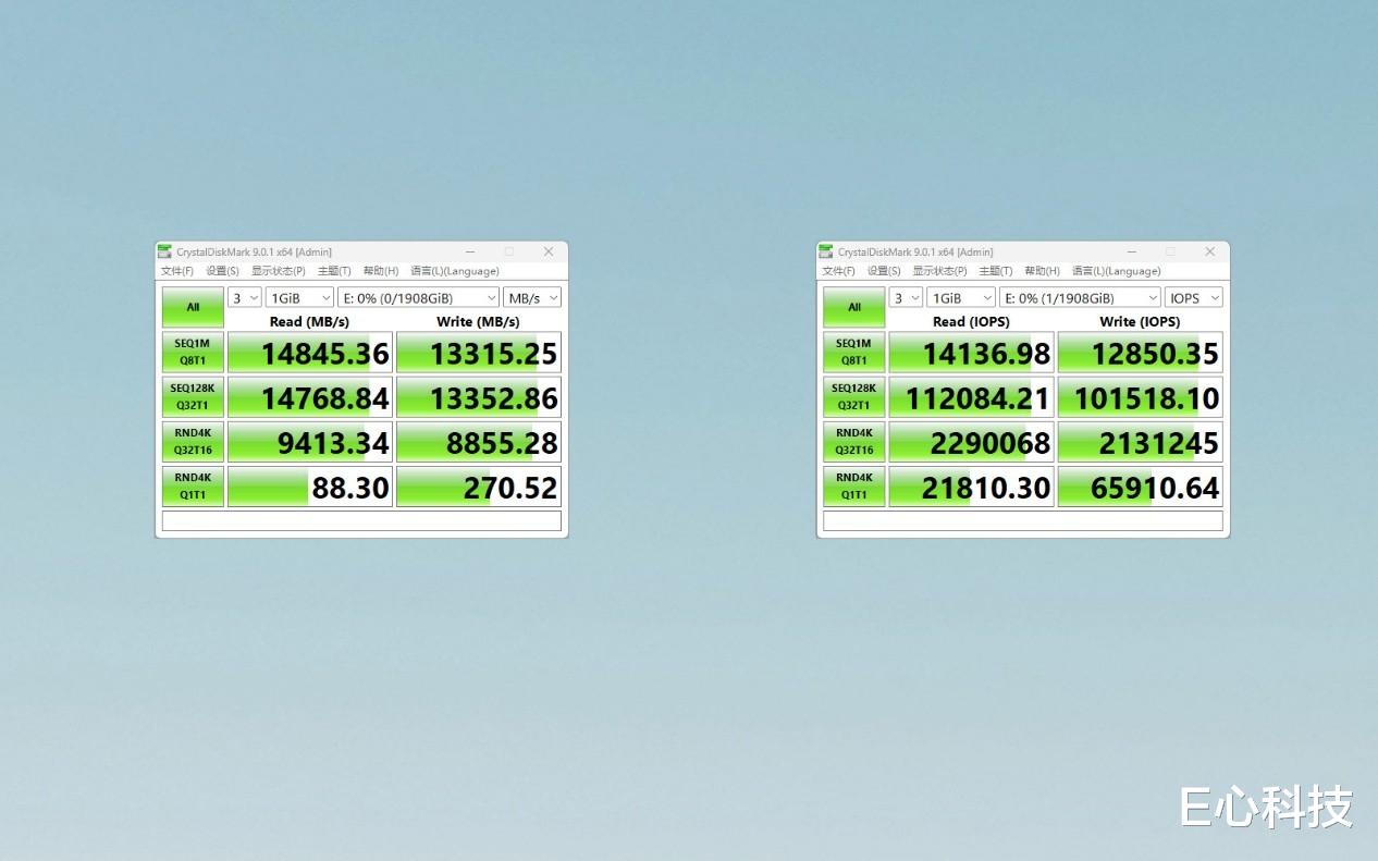 CrystalDiskMark 9.0.1 x64,是业内公认的专业存储设备测试工具。我们用这一最新版本对铠侠VE10完成了两轮测试,结果显示:无论是顺序读取速度,还是随机4K IOPS表现,实测数据都和官方标称参数几乎完全一致。
