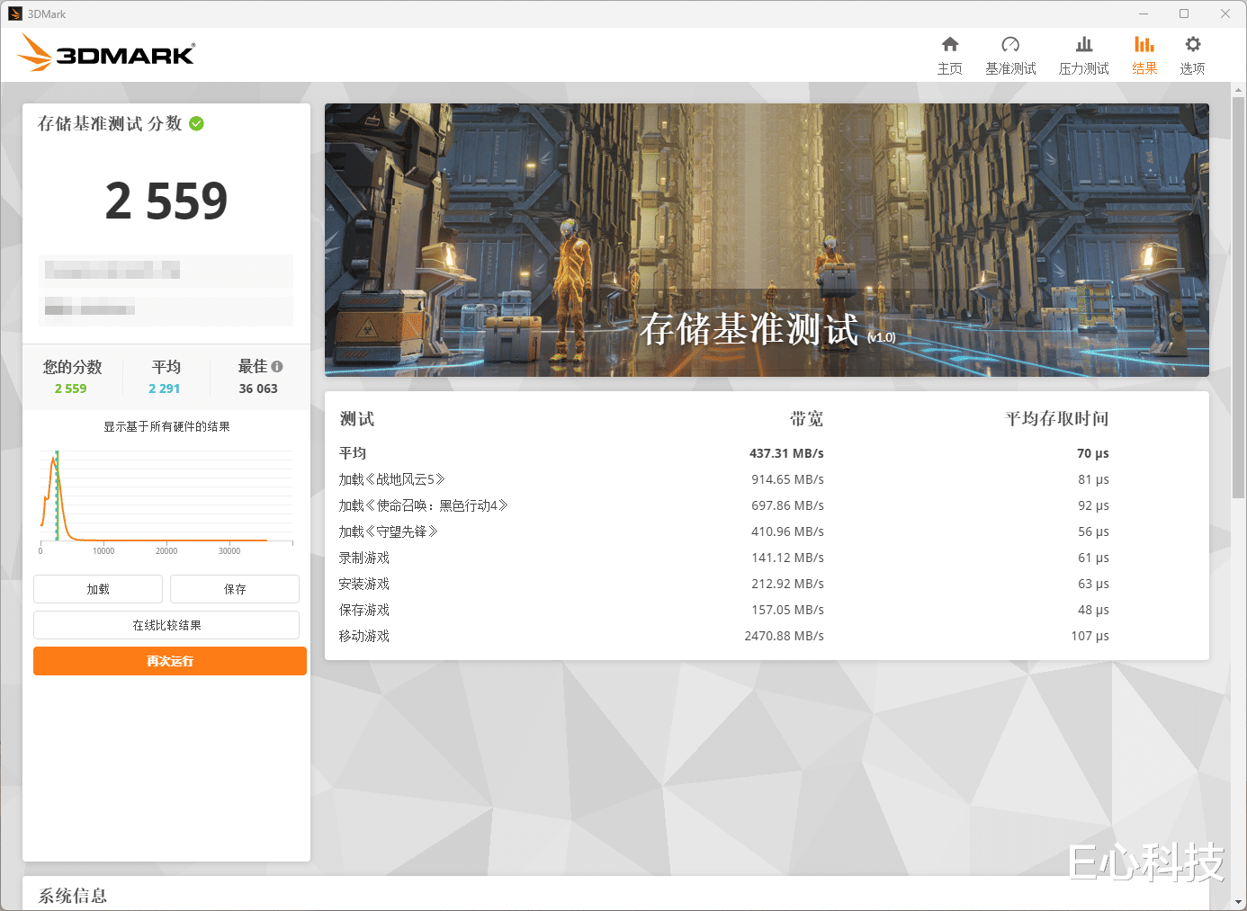 3DMARK的「存储基准测试」,通过模拟3A大作、网游的安装、加载、存档读写等真实使用场景,能直观展现硬盘在游戏中的实际性能表现。