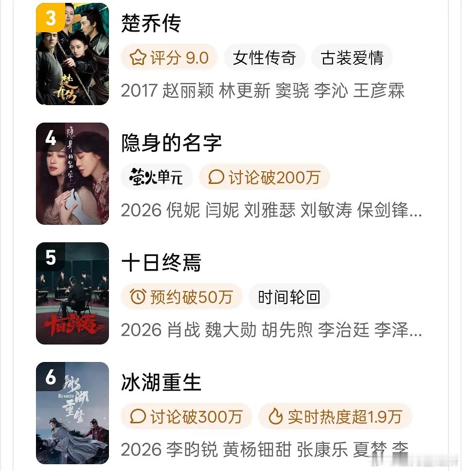 开播才第5天,冰湖重生已经下场了,楚乔传全面反超了