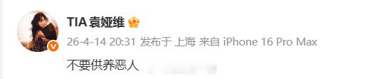 袁娅维 不要供养恶人袁娅维在说谁 :“不要供养恶人。”这是在说谁?
