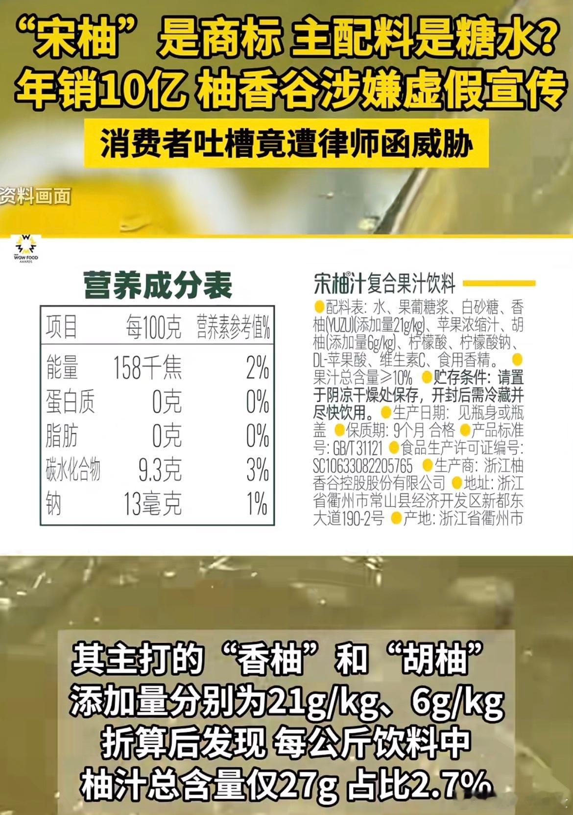 本来以为“宋柚汁”是啥高端的柚子饮料,这事件一出来才知道,原来“宋柚”是注册商标,不是柚子的品种!