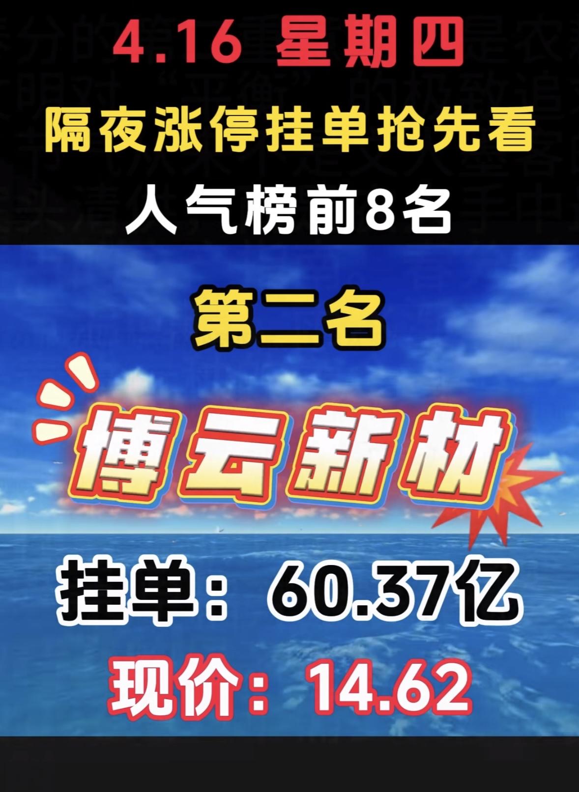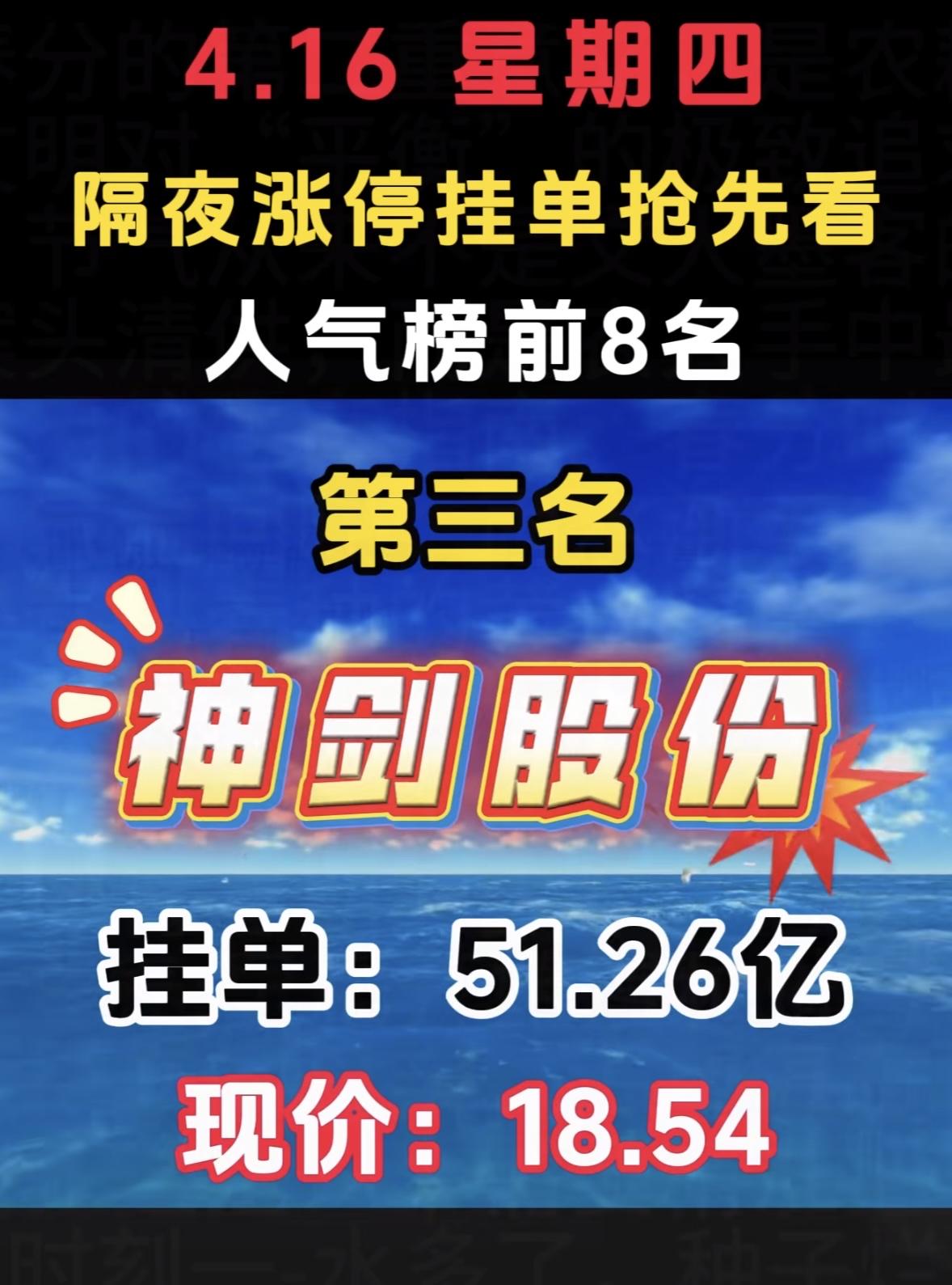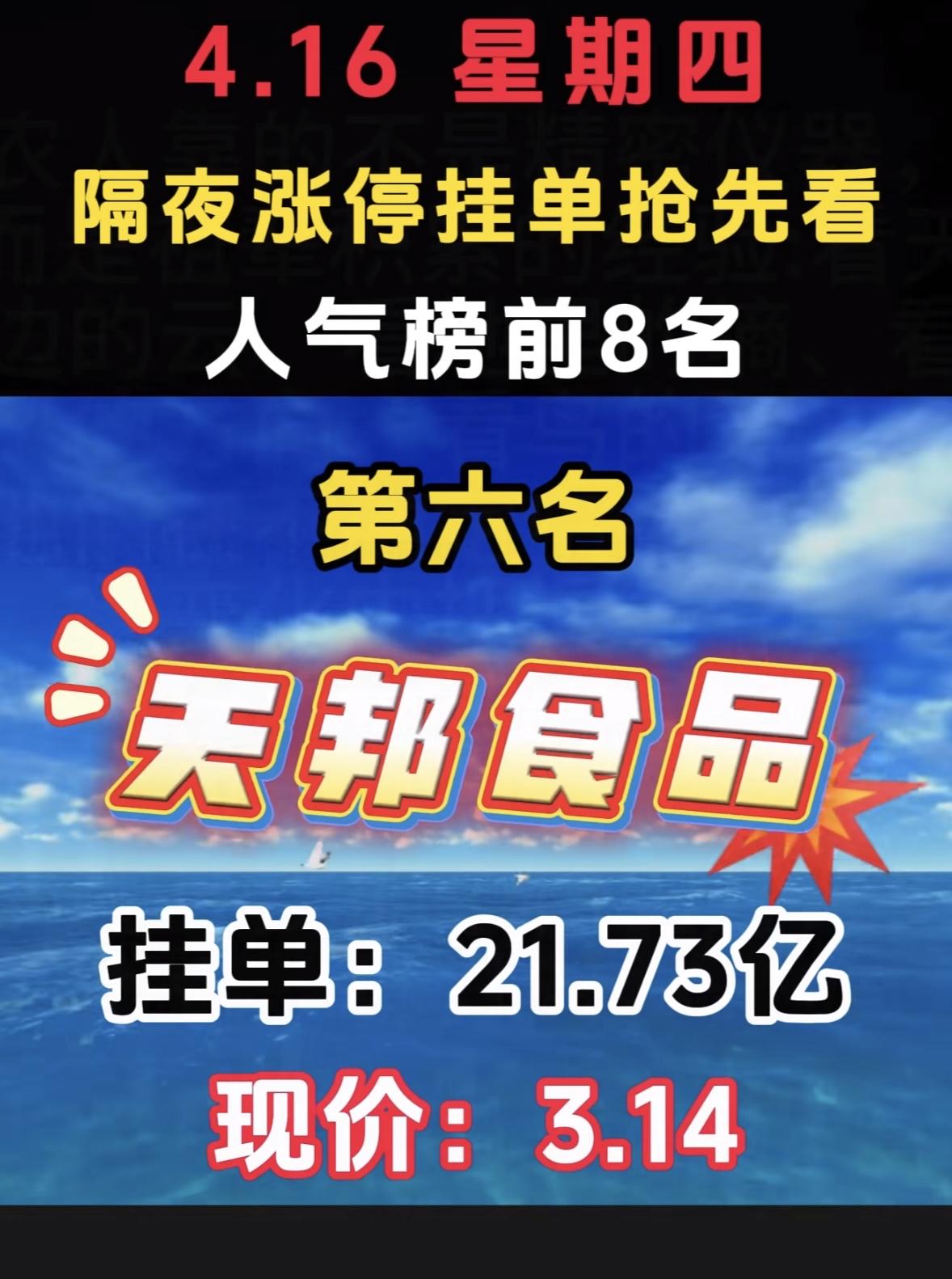 4月16日周四暗盘隔夜挂单排行榜出炉