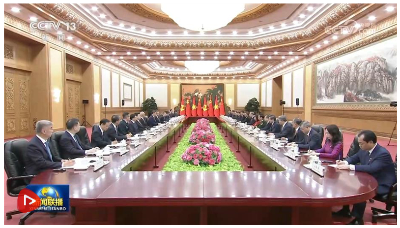 习近平再次祝贺苏林当选越南国家主席。习近平指出,你当选越南国家主席后第一时间到访中国,体现了你对发展中越关系的高度重视。相信在以苏林同志为首的越共中央坚强领导下,越南必将坚定走好社会主义道路,朝着建党建国“两个一百年”奋斗目标砥砺奋进。无论国际形势如何变化,中方始终将越南作为周边外交优先方向,愿同越方秉持初心、赓续友谊,团结协作、相互支持,继续按照“六个更”总体目标,高质量推进全面战略合作,加快构建更高水平具有战略意义的中越命运共同体,为推动构建人类命运共同体作出更大贡献。