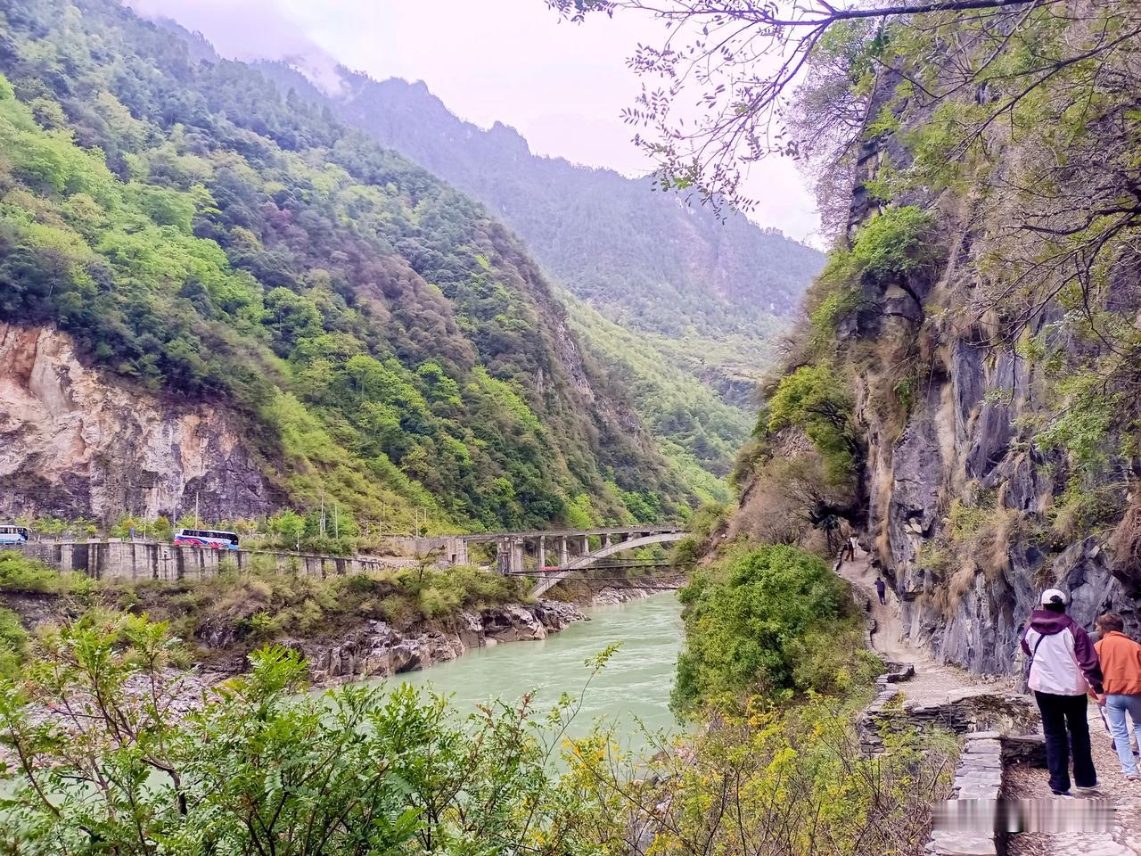 如今古道犹在,却留下了独有的宁静与厚重。站在古道远眺,两岸的原始森林茂密,雪山在云雾中若隐若现。
