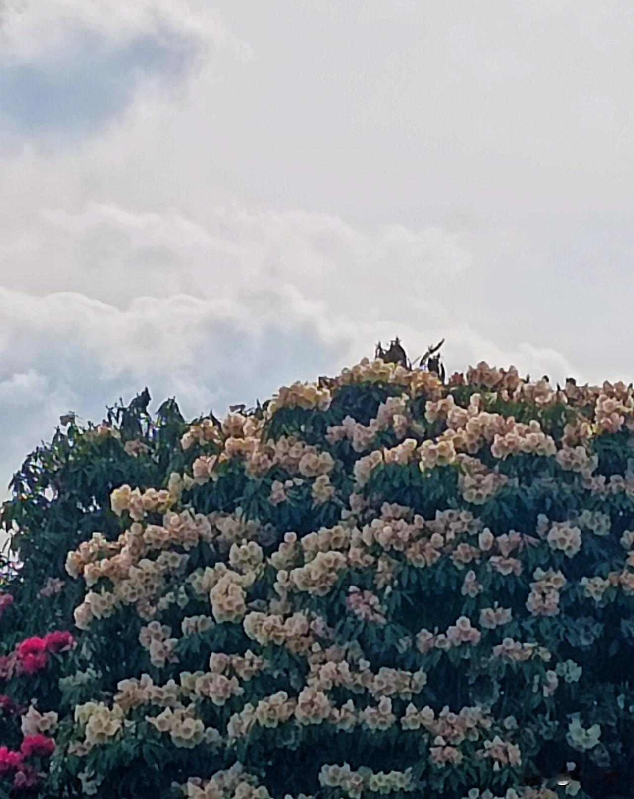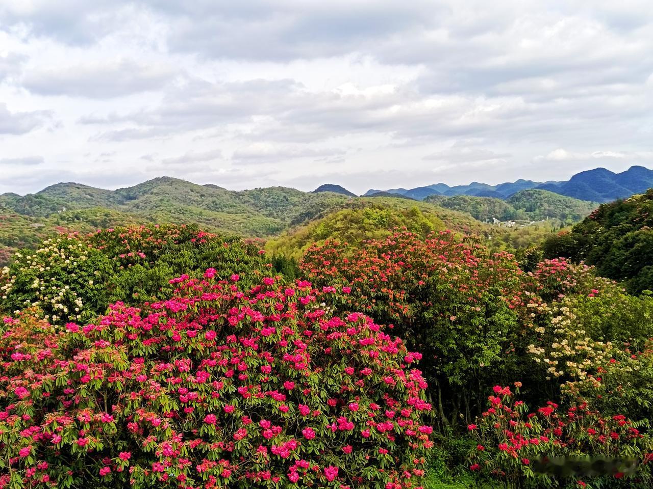 这里繁花簇拥,放眼望去,漫山遍野,令人震撼。 这里没有刻意雕琢的匠气,只有自然肆意生长的浪漫。漫山遍野的杜鹃花开得那叫一个轰轰烈烈。从山脚绵延至山顶,层层叠叠,铺展成一片无边无际的花潮。深红、玫粉、素白、淡紫,各色杜鹃交织在一起,真就是大自然打翻了调色盘,把最明艳的色彩,全都泼洒在了这方山野间。一树树枝头,繁花紧簇,挤挤抗抗,有的含苞待放,娇羞欲滴;有的肆意盛放,热烈奔放,花瓣层层叠叠,微风过后,花浪轻轻涌动,淡淡的花香,清爽怡人,不浓不烈,让人醉了。