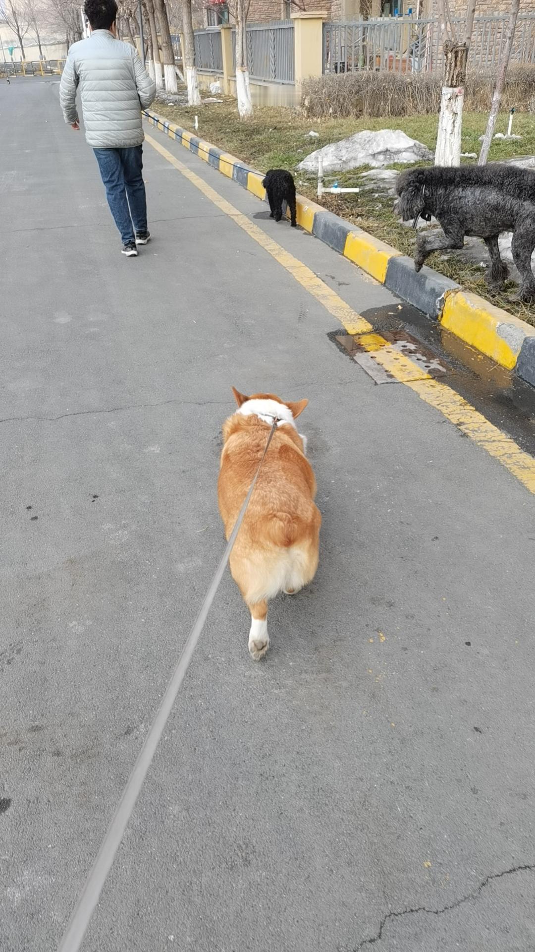 我帮别人养了一只柯基犬,名叫悠悠,特别胖。遛狗的时候,我家的巨贵犬相繇,小区邻居家的旺旺、傻狗往往都在一块。