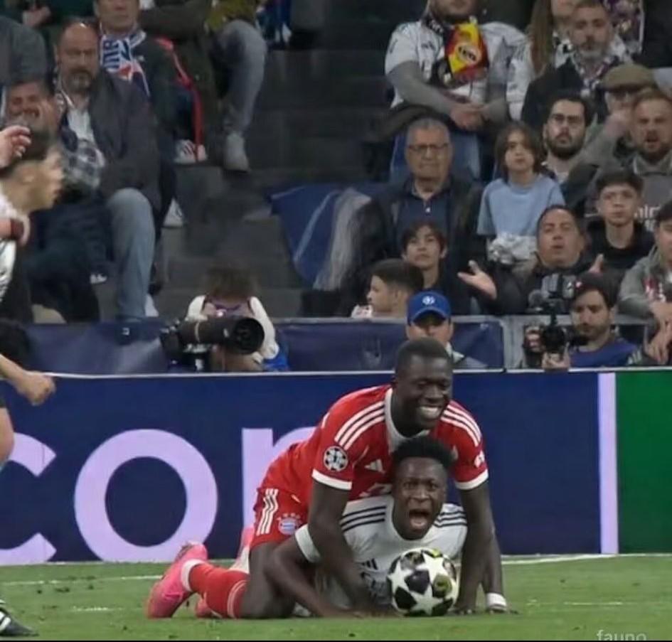谁能告诉我,当时发生了什么?维尼修斯一脸生气的样子,而他身上的拜仁后卫却露出他的那两排大白牙在那里傻乐?
