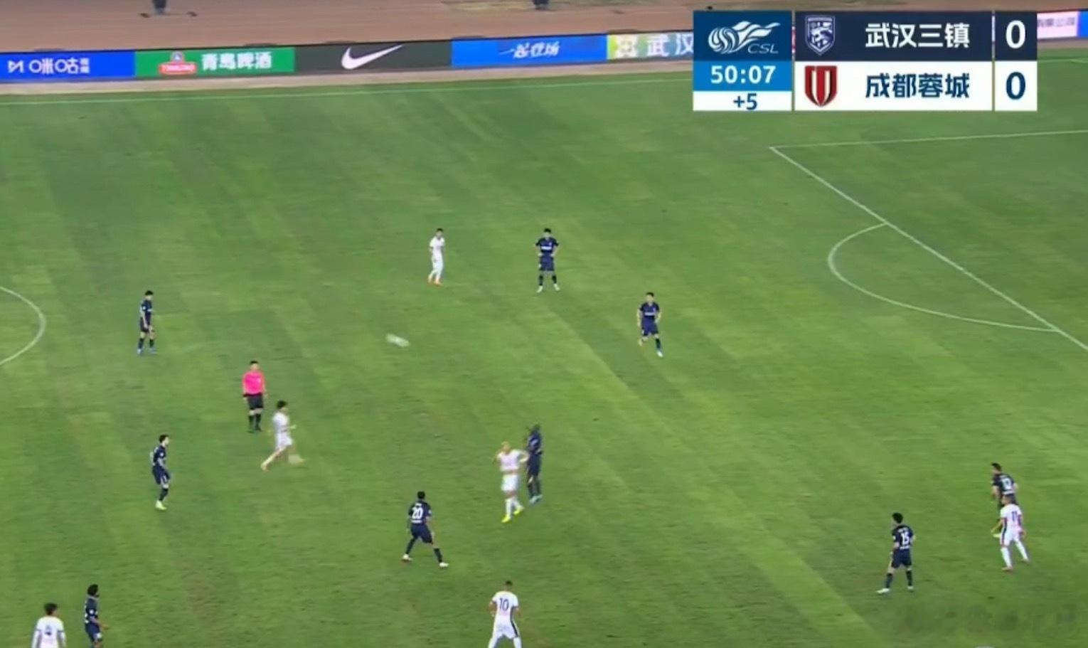 上半场0比0,武汉三镇五外援齐整,成都蓉城没有明显优势。相对来说,蓉城制造的威胁