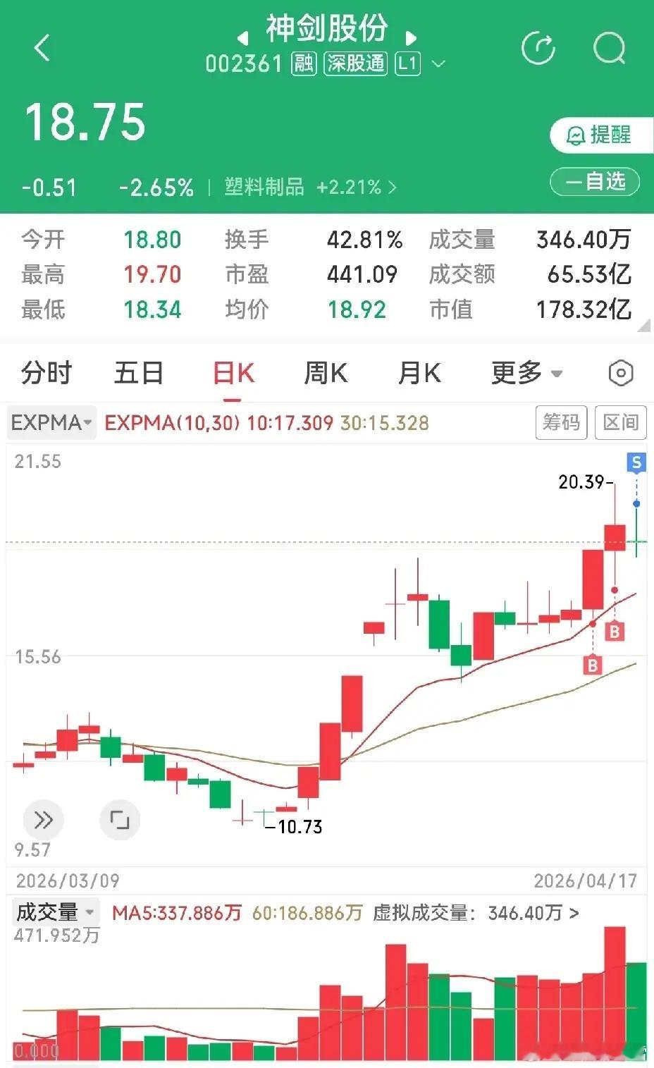 今天尽显臭棋篓子操作的是买错了通达股份,而且还买多了,开盘挂第一笔单子没成交,又挂了第二笔单子成交了,等着看股价冲起来了,还没高兴太久,股价飞流直下,看得我两眼发直,忘了还有一笔挂单,等再回头来想撤掉第一笔挂单,结果竟然被成交了,这样变成买了两笔,亏大了,周一看不行就割肉离场算了,只能认赔出局。