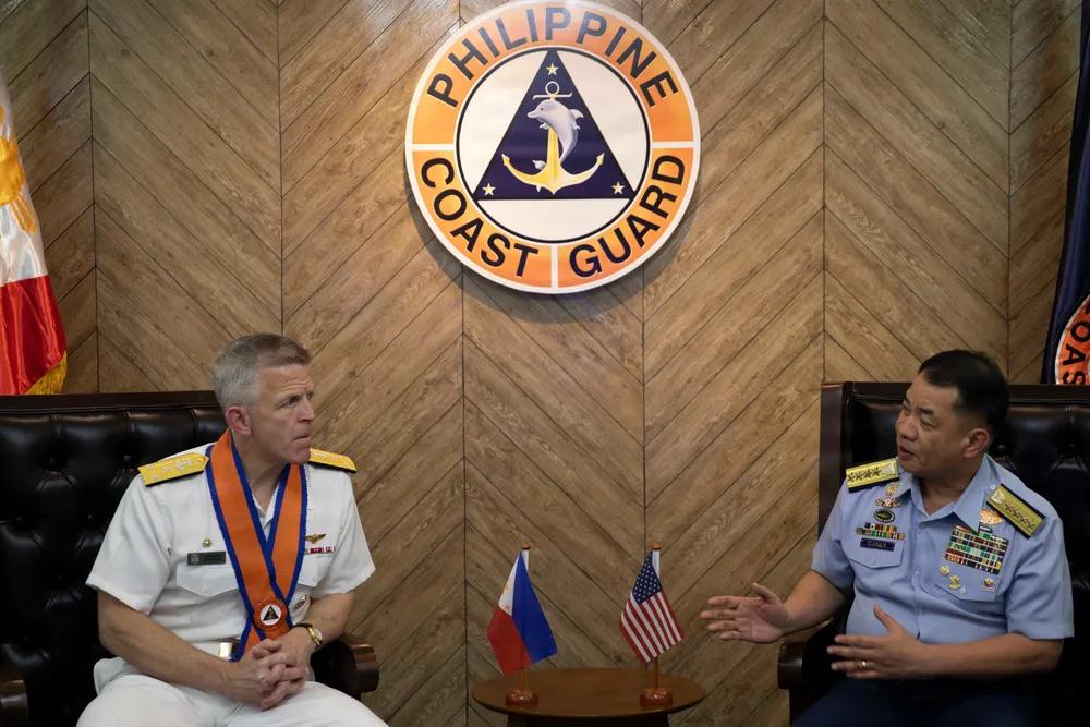 美军要进一步加强对菲律宾在南海情报支援的力度。 2026年3月19日,美国第七舰队指挥官副舰队司令帕特·汉尼芬和菲律宾海岸警卫队司令罗尼·吉尔·L·加万准备在菲律宾马尼拉的菲律宾海岸警卫队总部进行办公室拜访前执行阅兵仪式,并就区域议题进行商讨。