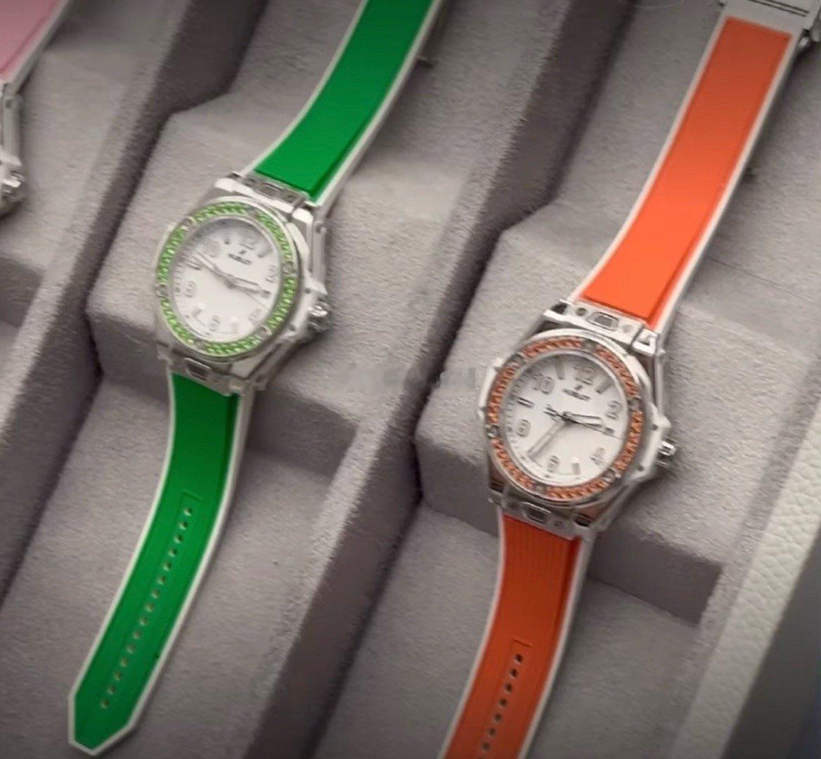 日内瓦钟表展|HUBLOT宇舶带来全新Big Bang Joyful精钢紫色腕表,以紫水晶为主角,表圈手工镶嵌澄澈紫晶,同色橡胶表带浑然一体。紫色不仅是幸运色,更象征内在平衡,戴上它,气场全开。