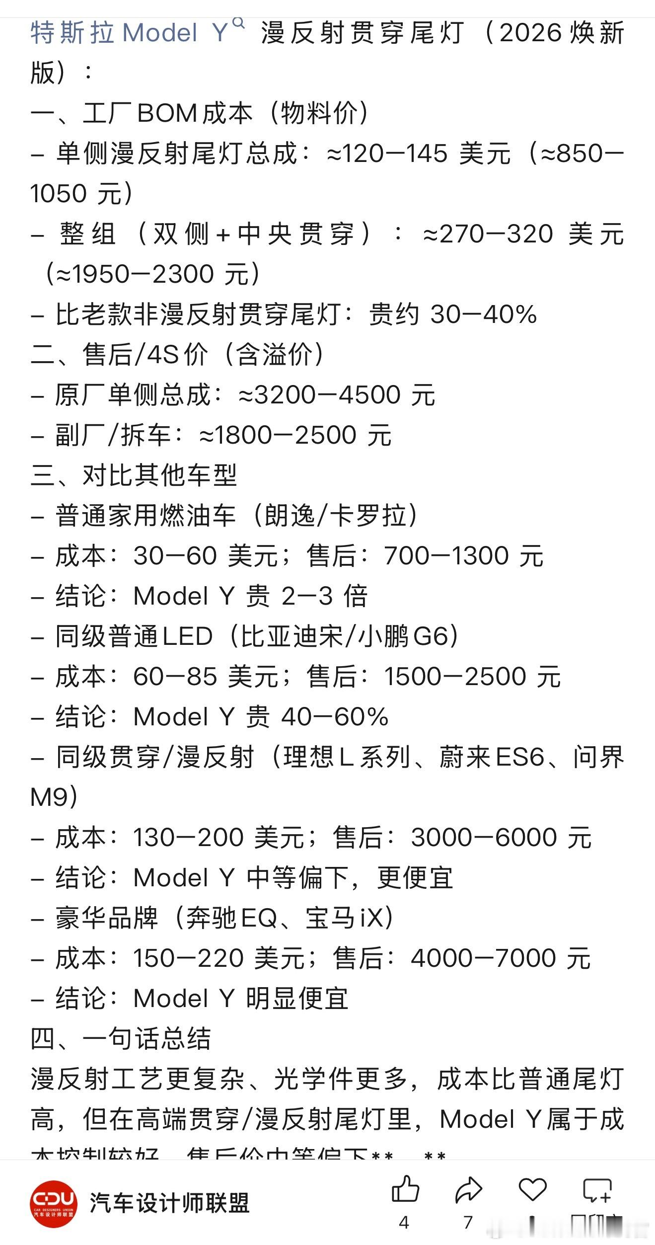 特斯拉Model Y的这个漫反射贯穿尾灯成本控制得很好,效果也不错