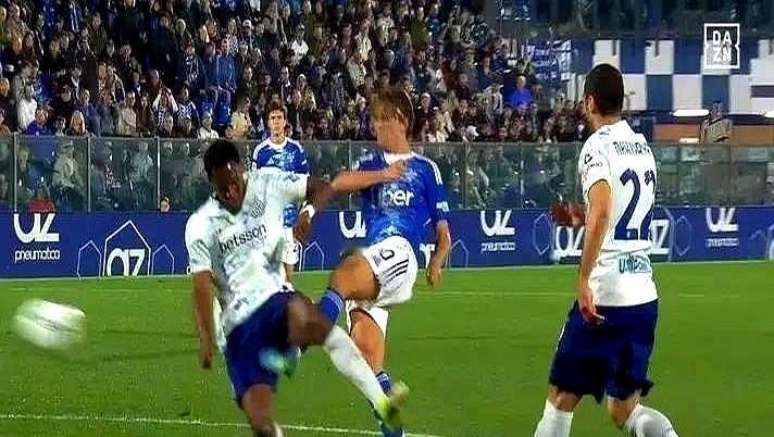 国际米兰对阵科莫,比赛到了89分钟。科莫前锋帕斯一脚射门,国米后卫博尼上前封堵。球飞出去了,帕斯的腿顺势踢到了博尼身上。主裁判马萨第一时间吹了禁区外任意球,还给了博尼黄牌。