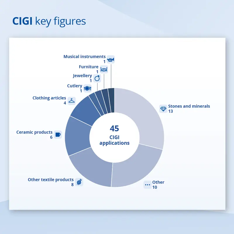 在运营的头几周内,欧盟知识产权局收到了45份CIGI申请,主要涉及石材和矿物以及纺织品等产品。