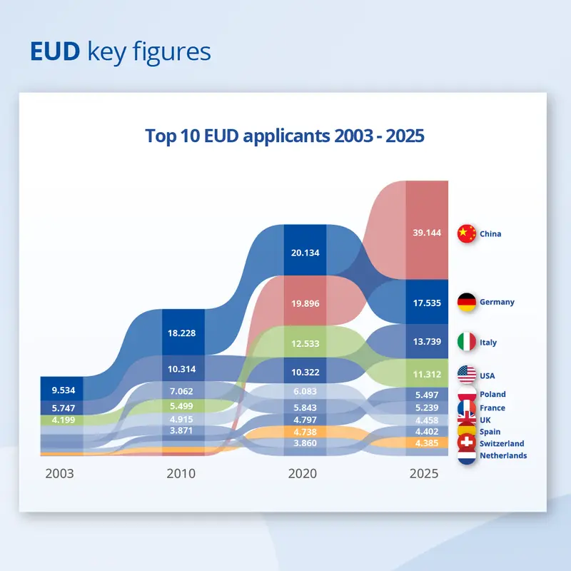 2025年创下的历史新高进一步确认了人们对欧盟知识产权局及其在支持现代、具有韧性和包容性的欧洲创新生态系统中的作用的信心。