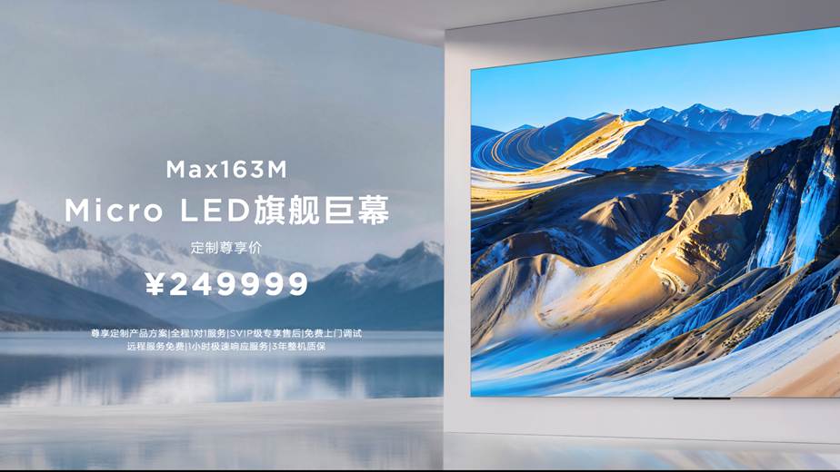 Max163M的定制尊享价为249999元,让跨时代级的巨幕观影体验有机会进入更多家庭。这款产品均同样可享受SVIP级专属售后与免费上门调试安装服务,预售期间也赠送98吋机皇X11L与10年视频会员权益。