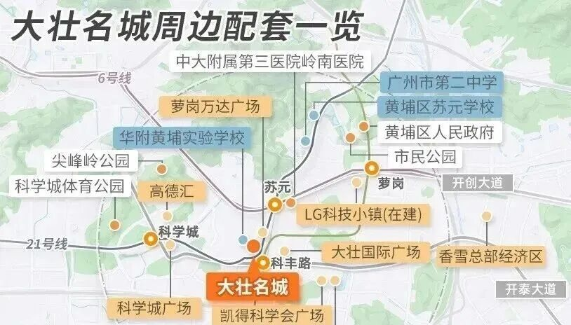 大壮名城位于科学城C位,周边配套是没得说除了现有的商业配套,大壮还有3个自家在建的商业广场;这里也是区政府附近,市政配套一流,也有很多公务员在周边购房,人群素质相对较高。