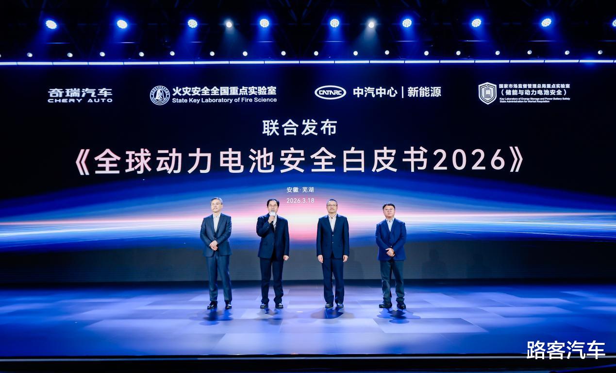 安全,从来不是简单的一项技术,而是一个标准、一套体系和一份承诺。在活动现场,奇瑞还携手火灾安全全国重点实验室、中汽中心丨新能源、国家市场监督管理总局重点实验室(储能与动力电池安全)等权威单位,联合发布了《全球动力电池安全白皮书2026》。古春山表示,这份白皮书凝结了奇瑞对电池安全的系统梳理与深度思考,作为中国汽车品牌的一员,奇瑞始终秉持着行业责任与全球视野,不仅要深耕自身的技术安全,更希望以技术积累和实践经验,为全球动力电池安全发展贡献力量。