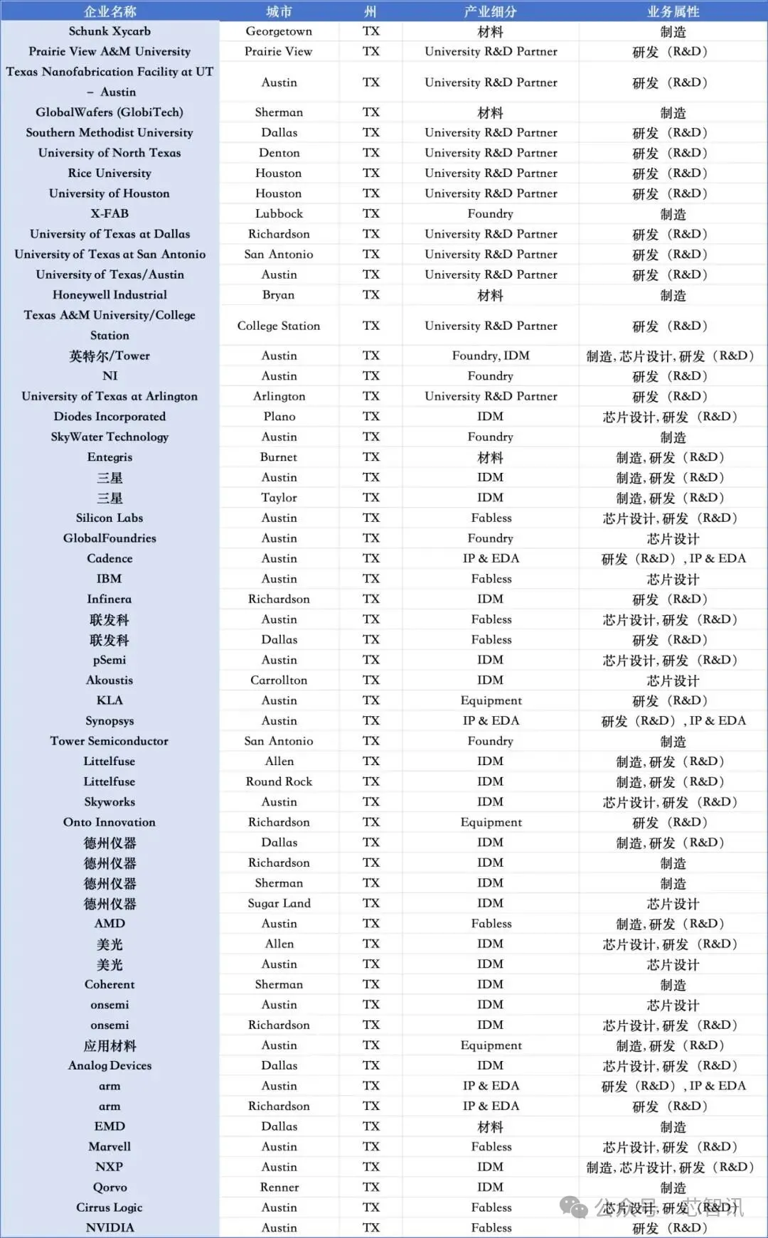 △美国德克萨斯州部分半导体企业