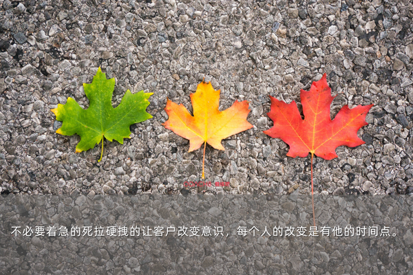 另外,我们不必要着急的去死拉硬拽的让客户改变意识,每个人的改变是有他的时间点。这样当教练比较容易放下执念,同时会有一种顿时的轻松感。