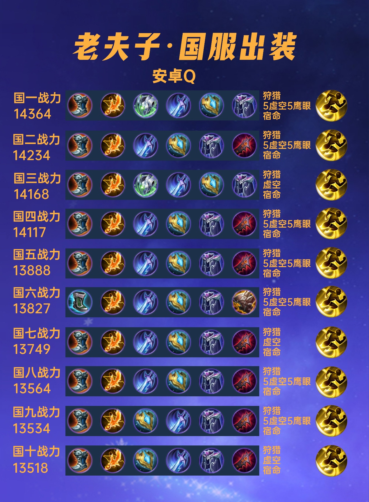 这篇文章我们来聊一聊最近出现的据说是颠覆性出装的老夫子新玩法,刚好统计完老夫子的国服出装,我们对比着来看一眼。
