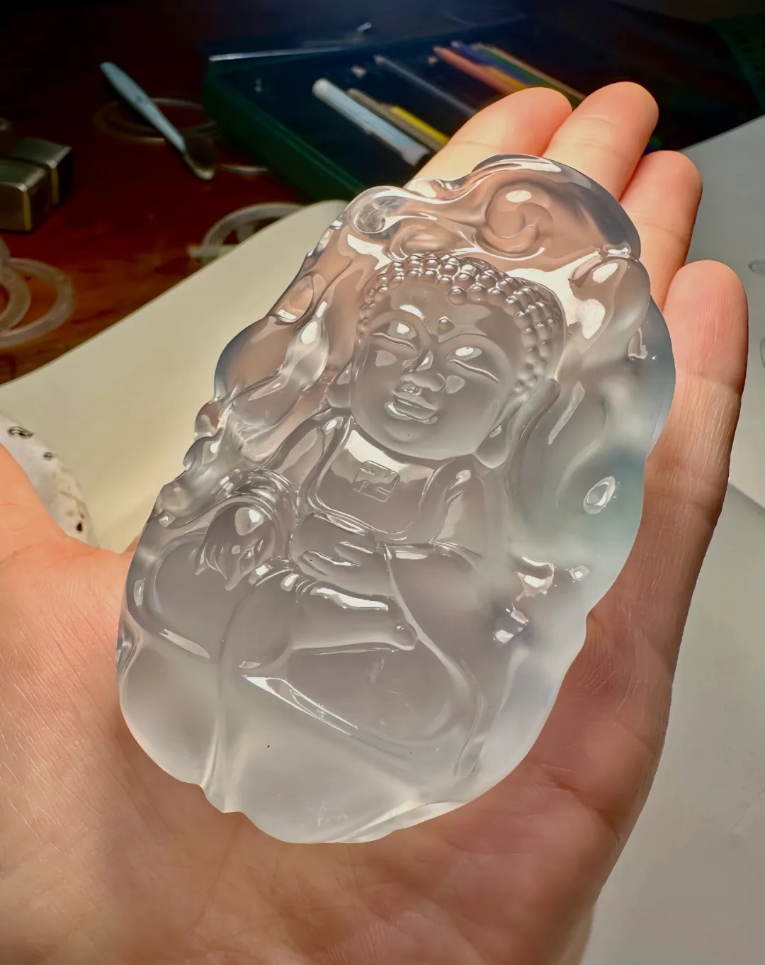 把皮全部扒完后,风险已经不大了,像这样的料子,主要就是玩棉玩裂,如果棉少裂少这个料子爆发力就比较强了!冰清玉莹,如同冰块般清澈透明,具有一种冷冽的美感。清亮似水,给人以清爽舒畅、冰彻心扉的感觉。半透明至透明的状态,似透非透,带着一丝朦胧的含蓄之美。