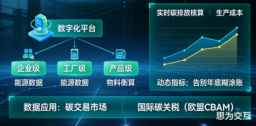 实时碳核算与足迹追踪:基于精细化的能源数据和物料衡算,数字化平台能够实现从企业级、工厂级到产品级的实时碳排放核算 。这意味着碳排放不再是年底才计算一次的“糊涂账”,而是像生产成本一样,可以被实时监控和管理的动态指标。这为企业参与碳交易市场、应对国际碳关税(如欧盟的CBAM)提供了坚实的数据依据 。