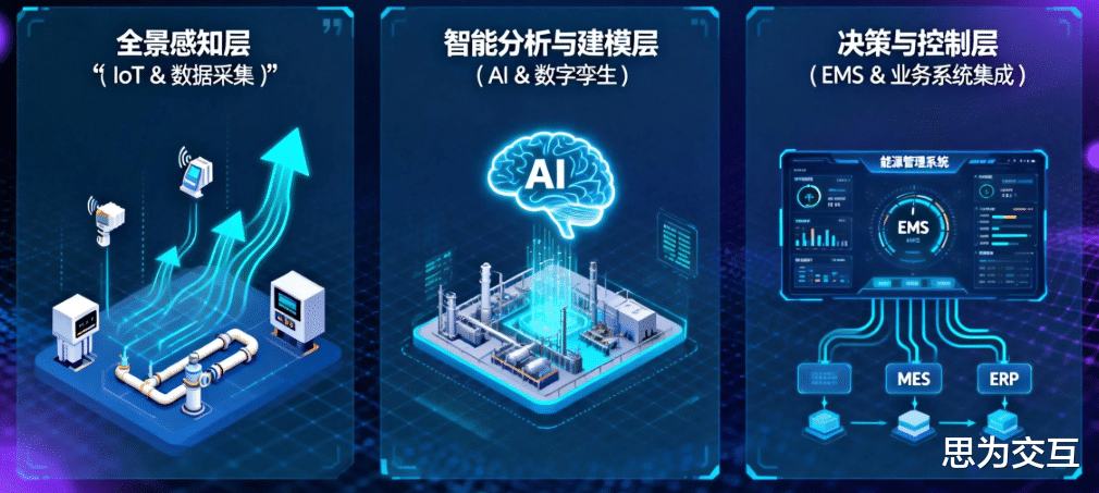 智能分析与建模层 (AI & 数字孪生):采集到的海量数据汇入云端或边缘计算平台,由“智能大脑”进行处理。人工智能(AI)与机器学习算法在此扮演关键角色,它们能够从纷繁复杂的数据中识别能耗模式、诊断异常波动、预测未来负荷 。而数字孪生(Digital Twin)技术则更进一步,它在虚拟空间中构建一个与物理工厂完全对应的“镜像工厂” 。这个虚拟模型不仅整合了IoT的实时数据,还能模拟各种生产场景下的能源消耗与碳排放轨迹,成为企业进行能效优化和减排策略推演的“虚拟实验室” 。